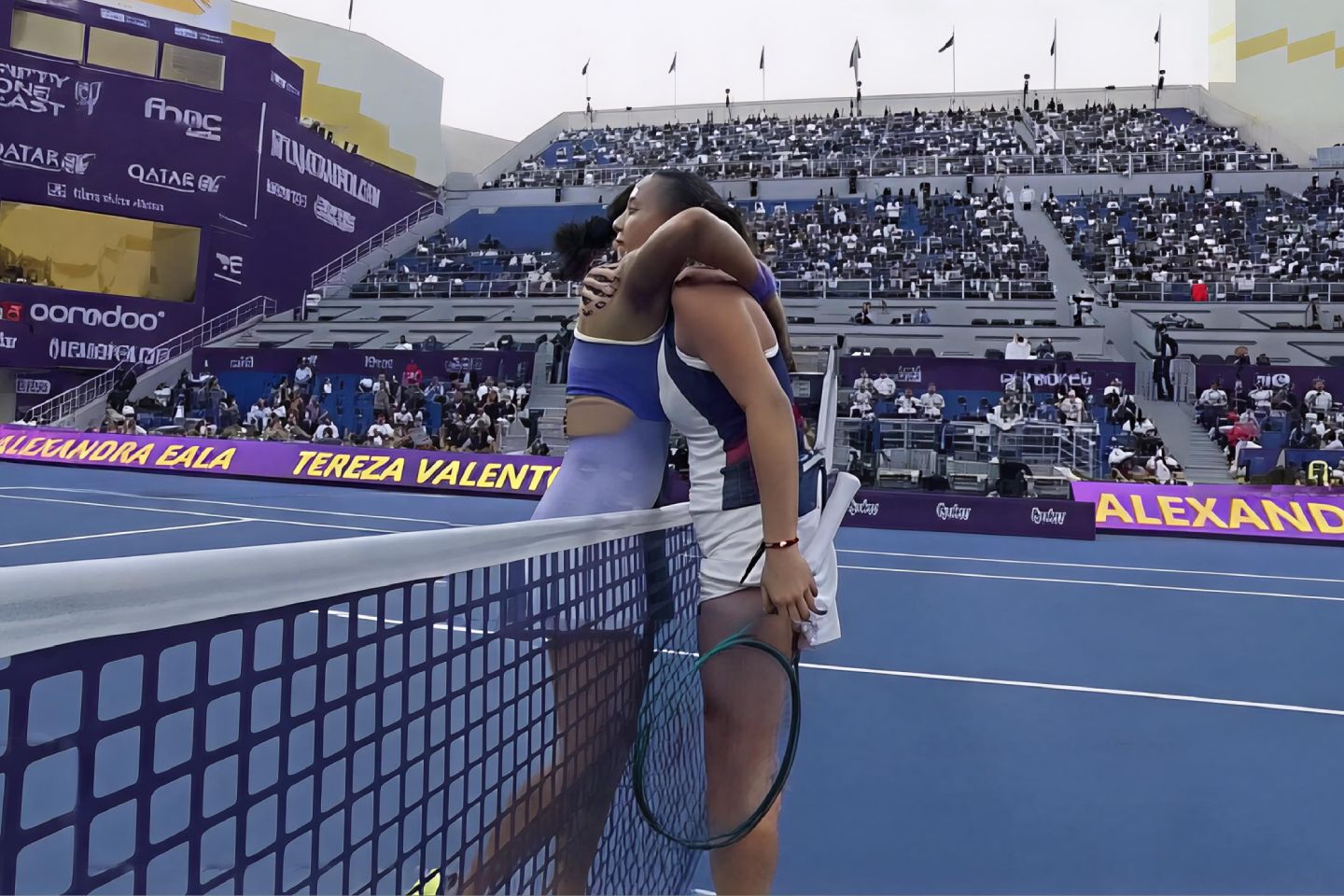 Playing the first match of the day at the Centre Court of the Khalifa International Tennis and Squash Complex—filled to capacity by Filipino fans—the 20-year-old Eala could not overcome the superior strength of 18-year-old Tereza Valentova of the Czech Republic, who scored a 7-6(6), 6-1 victory in their opening-round matchup in the 2026 Qatar TotalEnergies Open.