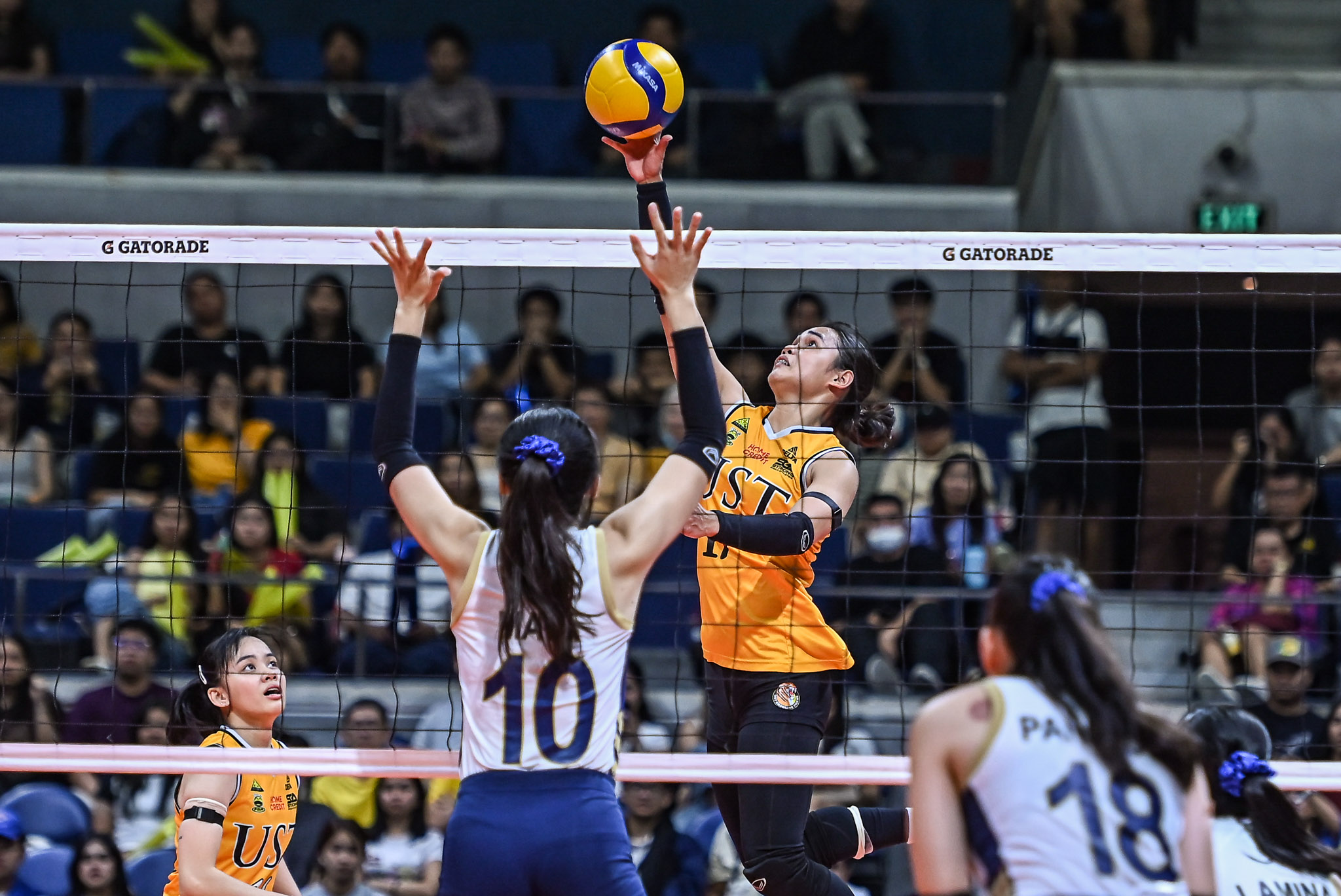 UST looked poised to close the match after taking the first two sets, but NU refused to fold, regrouping to steal the next two frames — including a late surge from a 5-9 deficit in the fourth — to force a deciding fifth set.