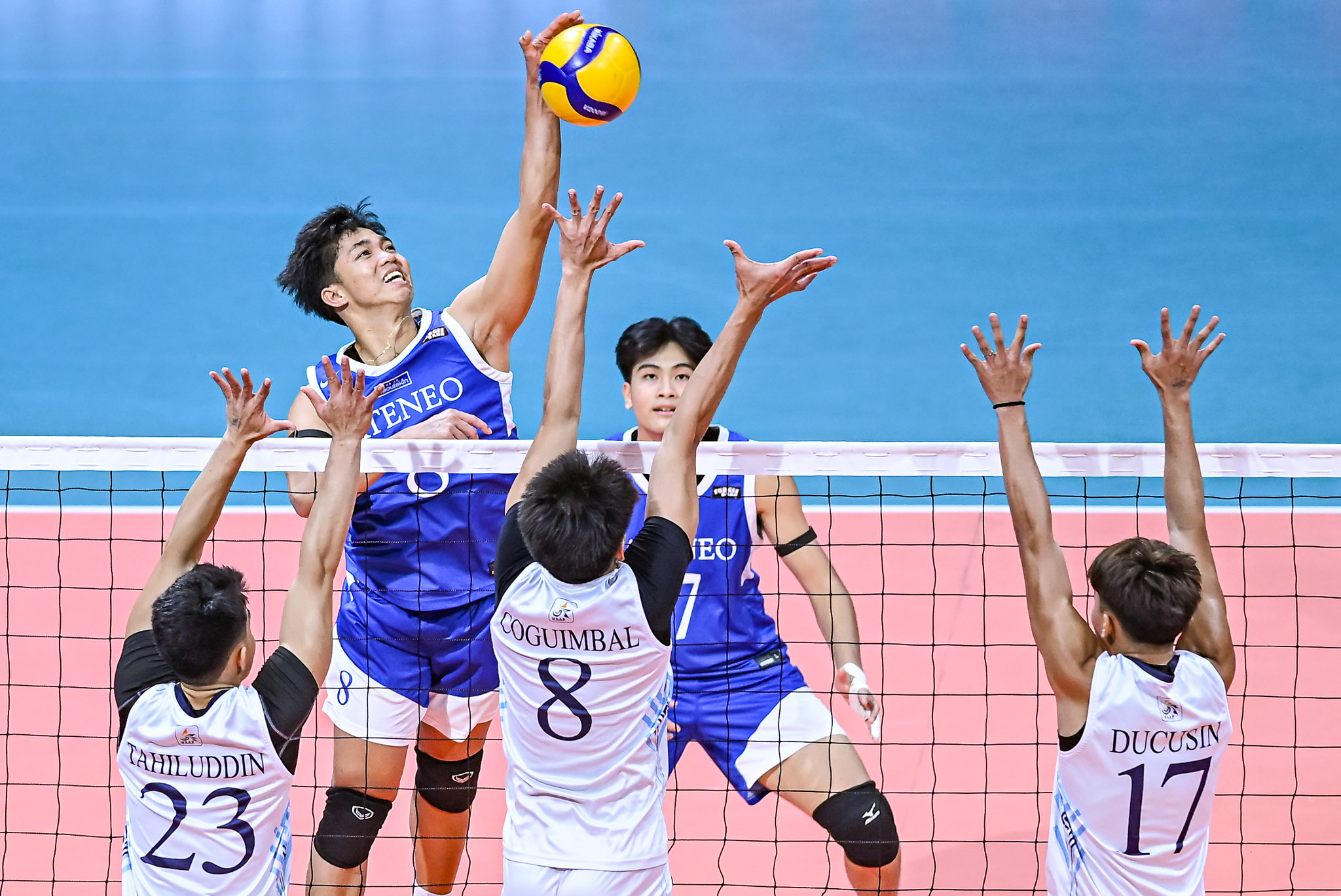Tied at 10-all in the fourth set, Ateneo uncorked five consecutive points—built on two attacks from Pacinio and Brian Castro, along with three attack errors from Jims Ducusin and Maruel Tan—to put Adamson in a 15-10 hole that proved insurmountable.