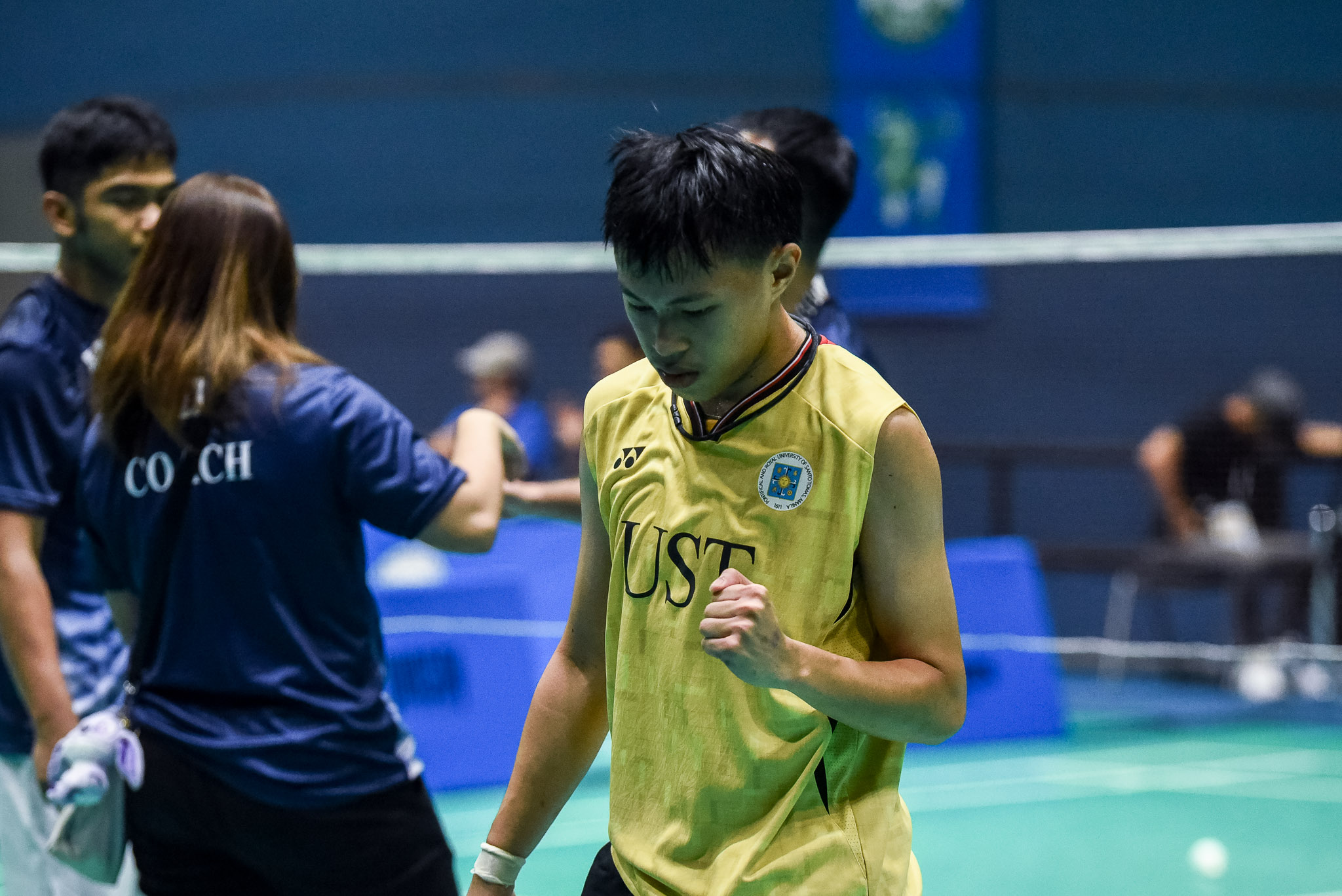 UST set the tone early with Lennox Cuilao defeating Adamson rookie John Russel Oliveros, 15-21, 21-15, 24-22, followed by JM Sison’s quick 21-8, 21-13 win over Heaven Linaban.