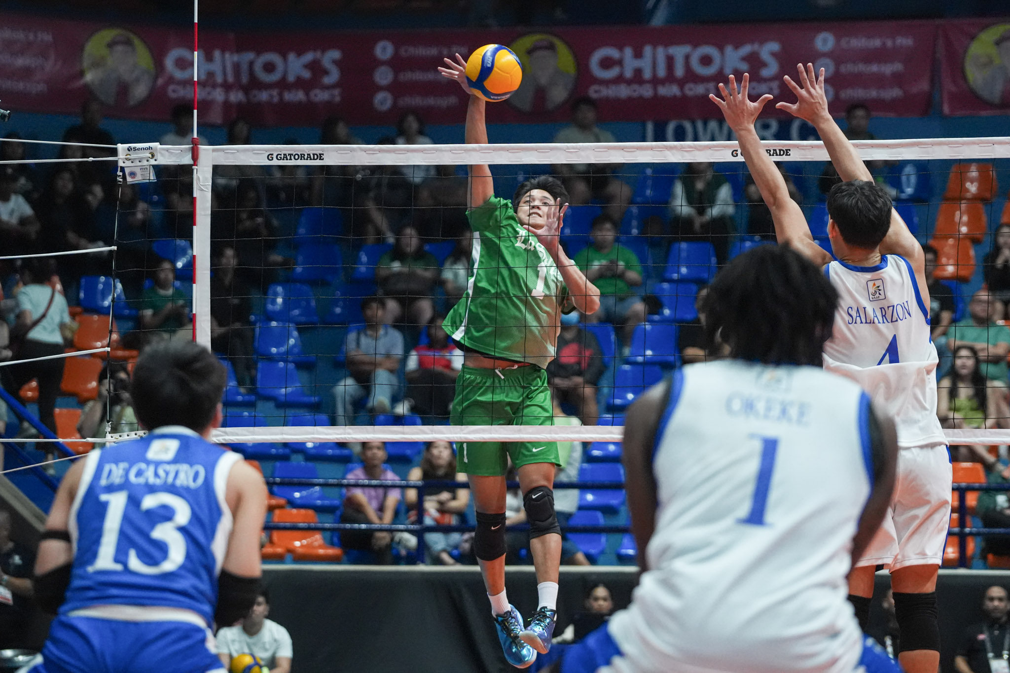Okeke contributed 12 points on eight attacks and three blocks, along with 11 excellent receptions and two excellent digs, while Enzo Gutierrez dished out 19 excellent sets and added two points. Graduating libero Lance de Castro anchored the defense with 15 excellent digs and six excellent receptions.