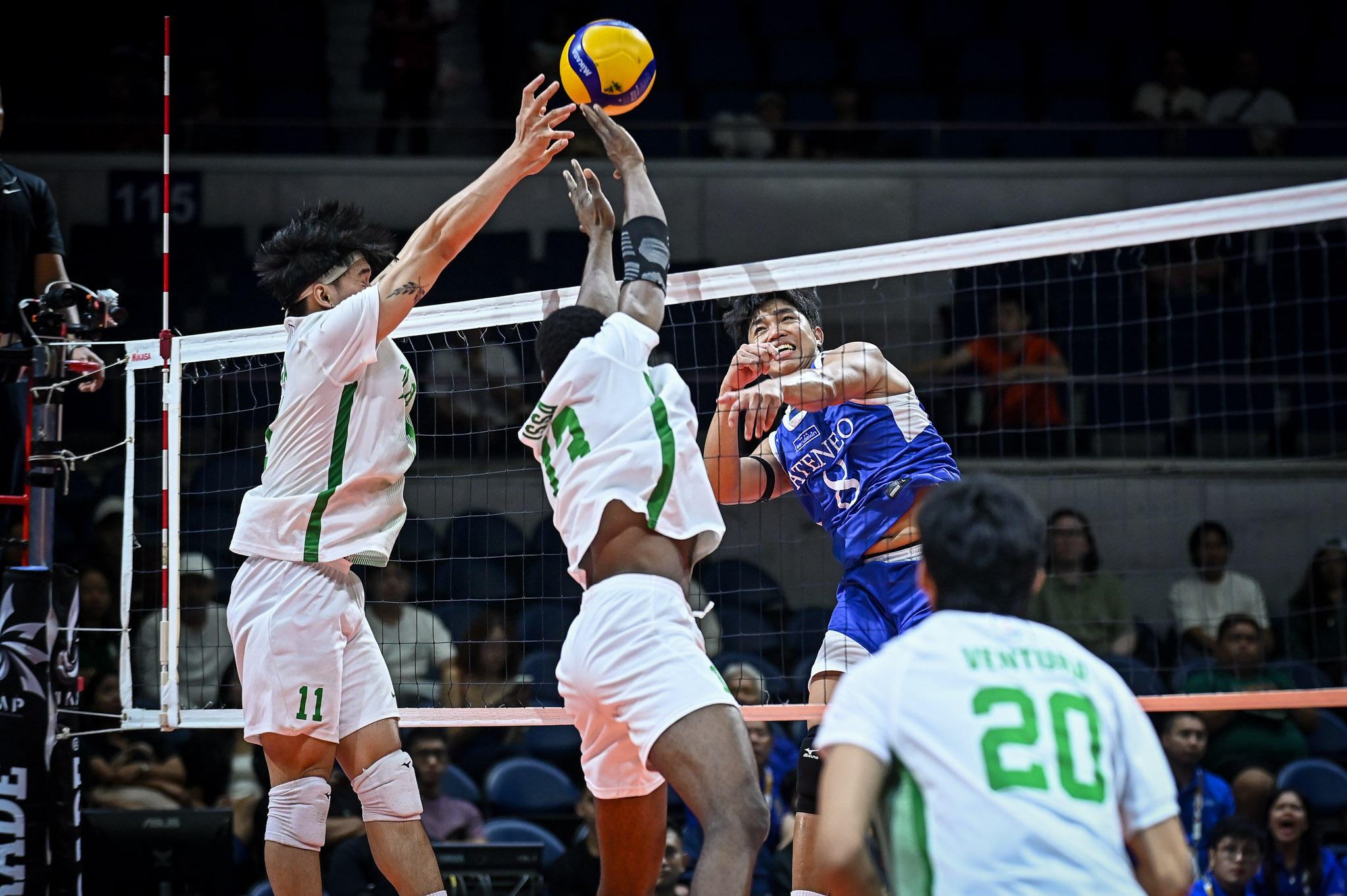 The Blue Eagles looked set to close the match in four sets after establishing a 14-10 lead, but the Green Spikers, powered by Eugene Gloria and Rui Ventura, surged back with a 15-6 run to force a decider.
