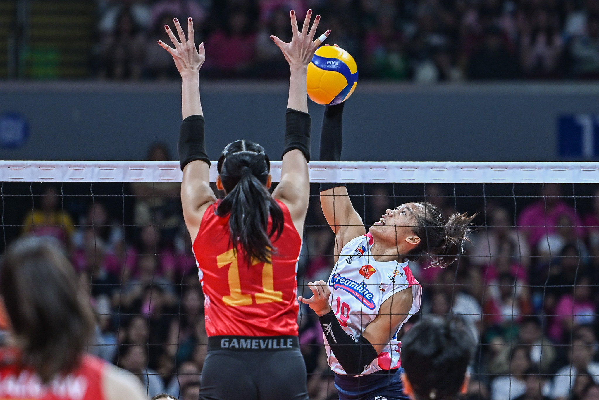The veteran wing spiker erupted for 28 points to power a stunning five-set comeback, steering Creamline to a 22-25, 27-25, 19-25, 28-26, 15-10 victory on Saturday before a massive crowd of 12,411 at the Mall of Asia Arena.