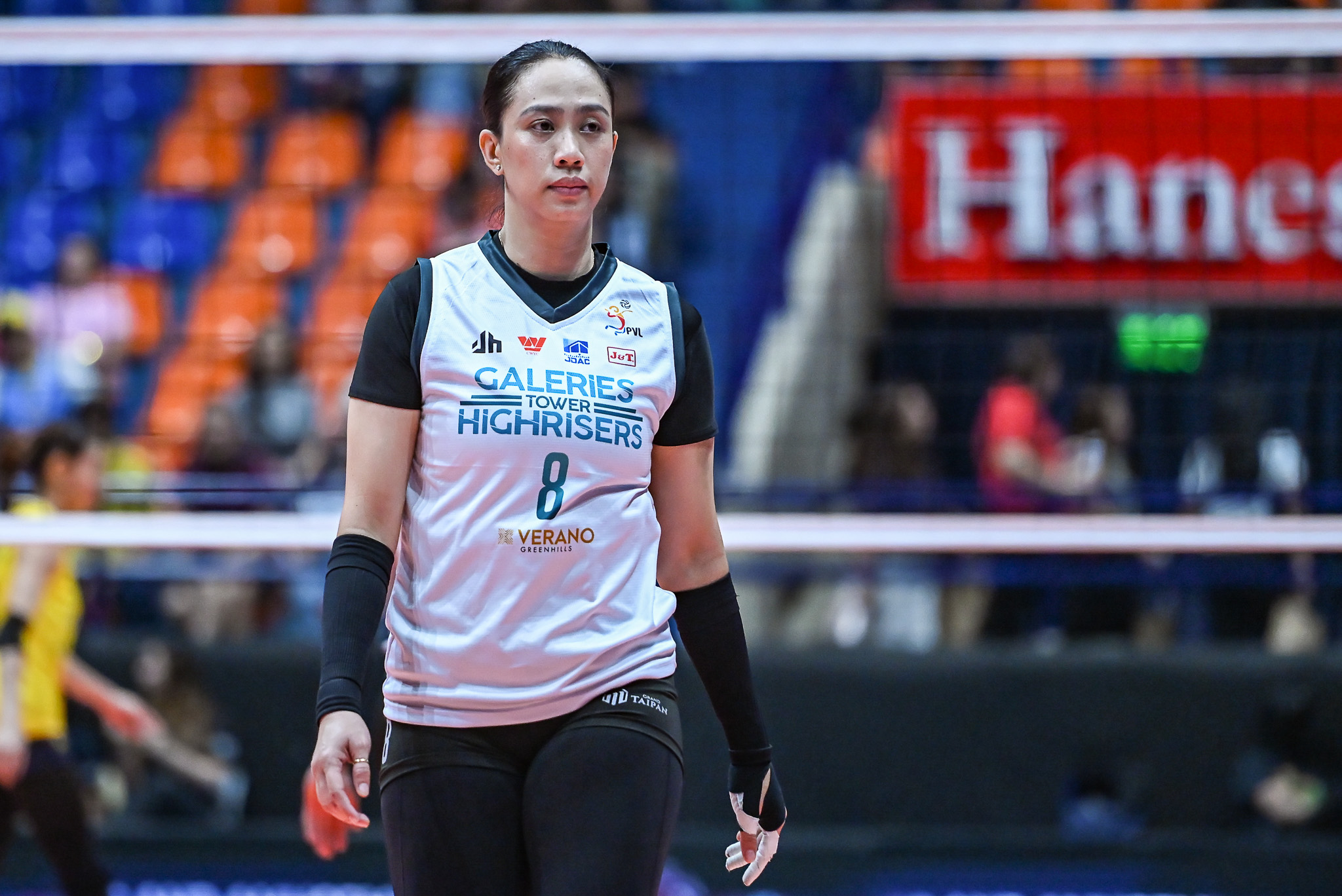 Julia Coronel anchored the offense with 25 excellent sets, along with three points, including two blocks, for the Highrisers.