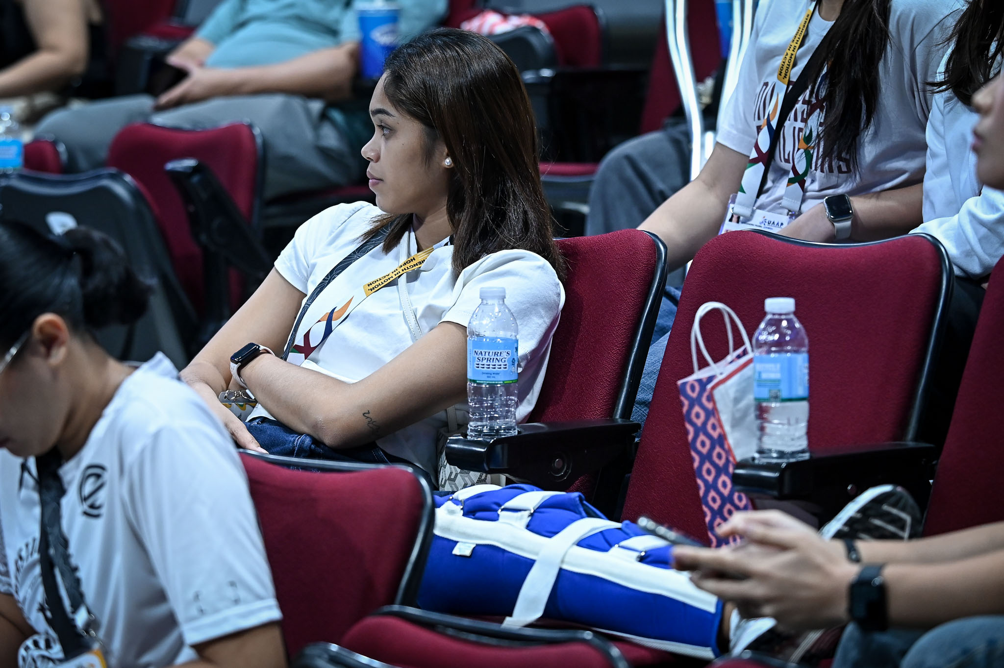 After pushing a far-set ball to the other side of the net, the Catmon, Cebu native landed awkwardly and had to return to the dugout before later coming back to the bench with her left leg elevated on a chair.