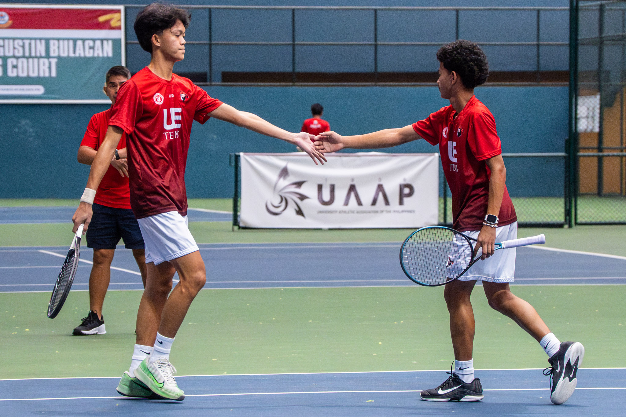 Aser Delos Santos and Kobi Luzon once again delivered in doubles, subduing Ariel Cabaral and Jeremiah Labasano, 6-3, 6-2, to seal the overall victory for UE.