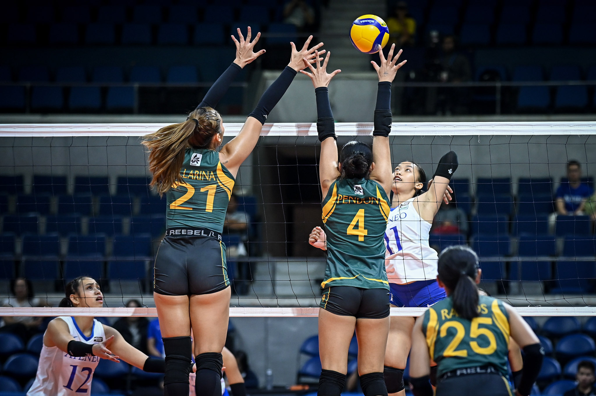 The Blue Eagles were three points away from forcing a fourth set, leading 22-17, when Lovely Lopez and Jazlyn Ellarina combined for a 9-2 run to clinch the victory for the Lady Tamaraws.