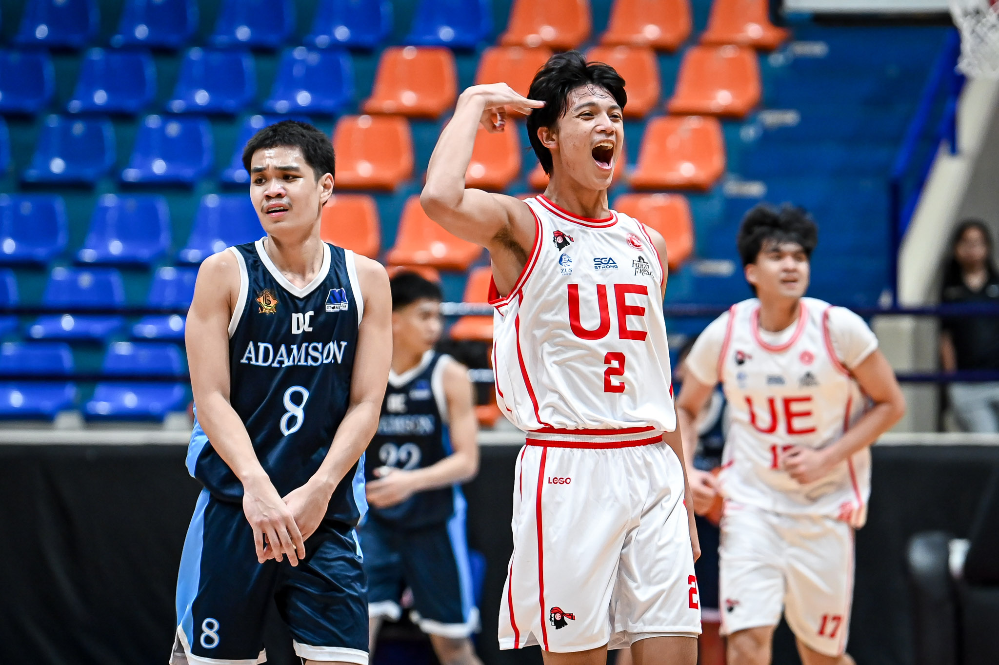 In the Adamson-UE clash, two free throws by Bill Garcia and Jarl Artango briefly gave the Baby Falcons a 60-56 lead with 4:13 remaining, but the Junior Warriors responded with an 11-4 run, capped by a layup from Jolo Pascual and a three-pointer from Ethan Aguas, taking a 67-64 lead with 36.9 seconds left.