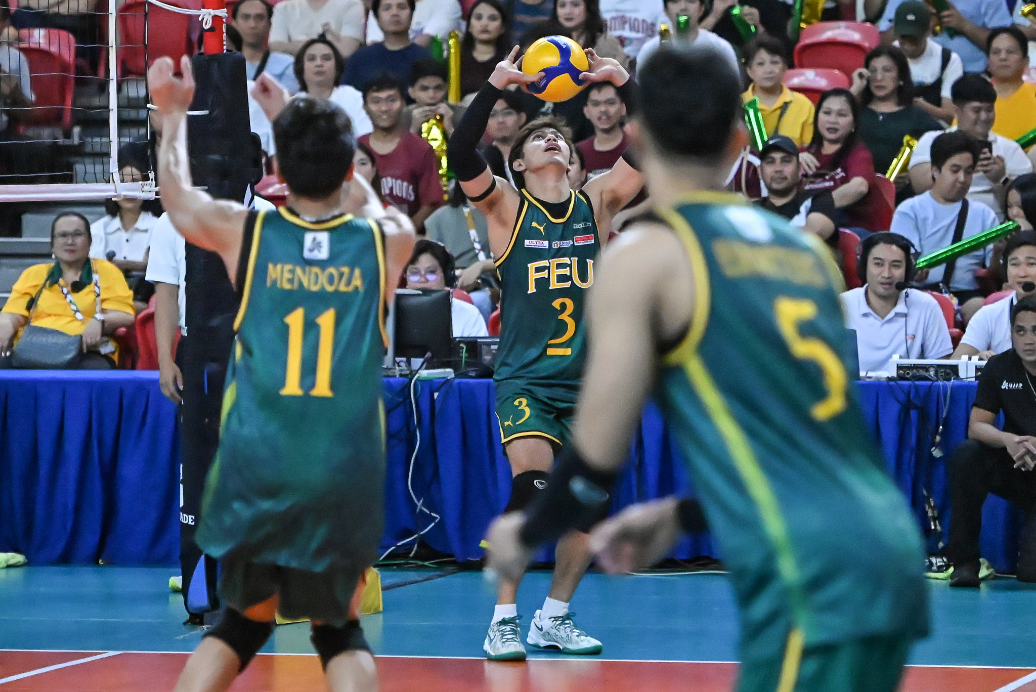 The Tamaraws got off to a slow start, allowing the Fighting Maroons to build a 20-16 lead in the opening set behind the attacks of Olayemi Raheem, Tommy Castrodes, and Angelo Lipata.
