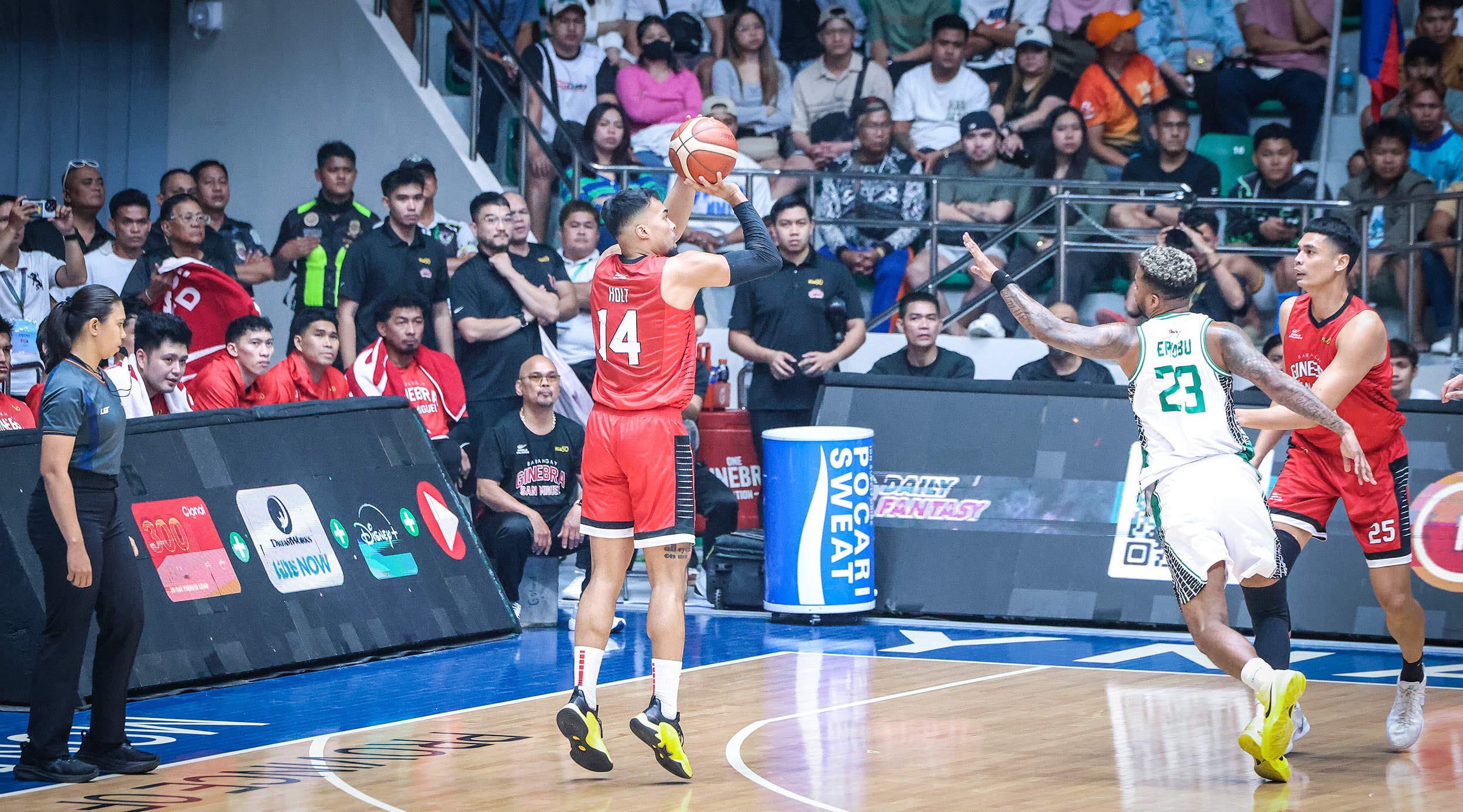 The Gin Kings got going from deep early by nailing five of their 18 triples in the first 12 minutes, although it wasn’t until the third quarter that they’d break away for good, much to the delight of the pro-Barangay crowd that showed up.