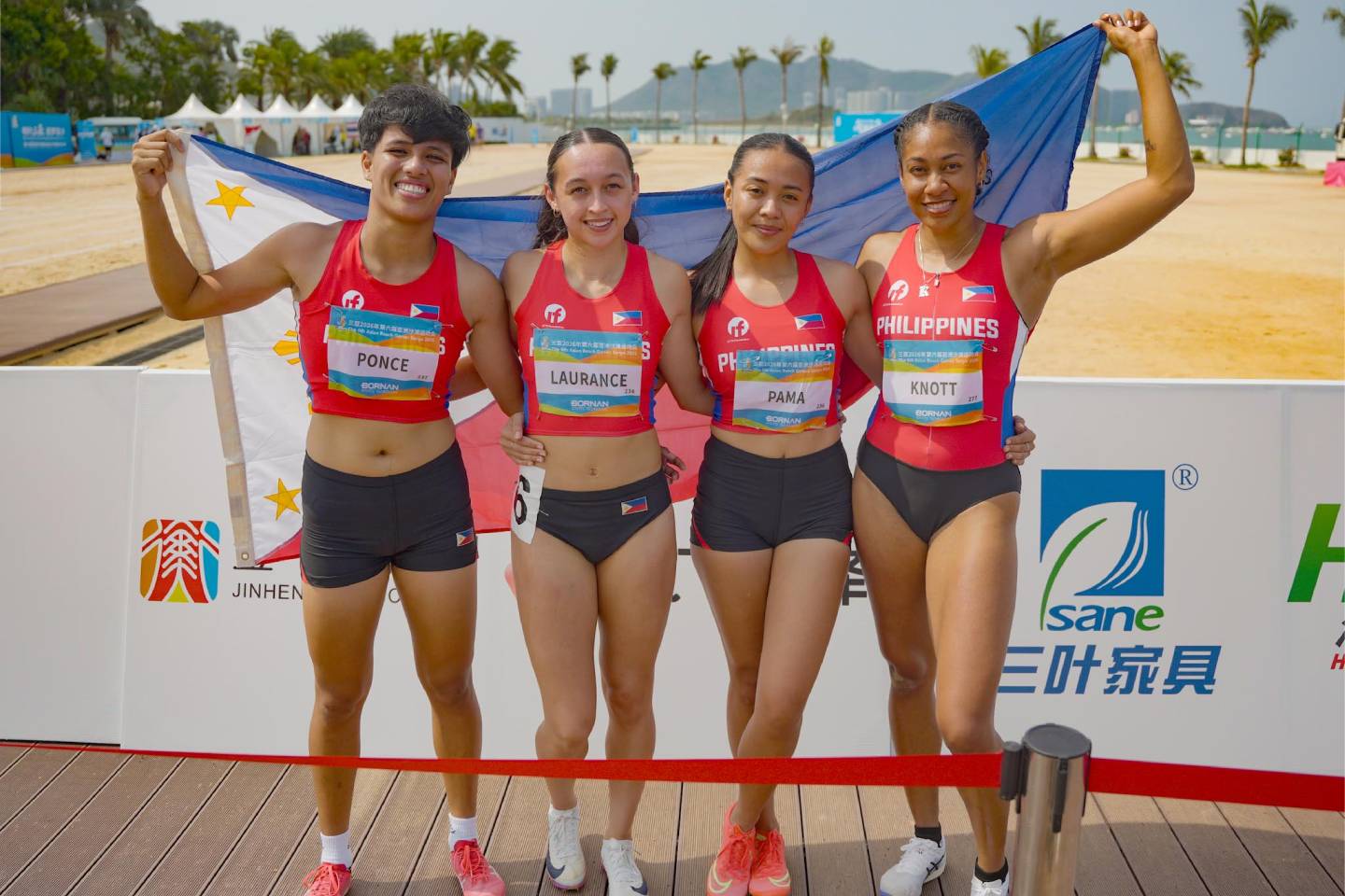 Team Philippines continued to make waves on the sands as the women’s sprint team bagged a silver medal in beach athletics, while both Alas Pilipinas beach volleyball squads advanced to the quarterfinals, with the country maintaining its hold on third place overall on Sunday in the 6th Asian Beach Games in Sanya, China.