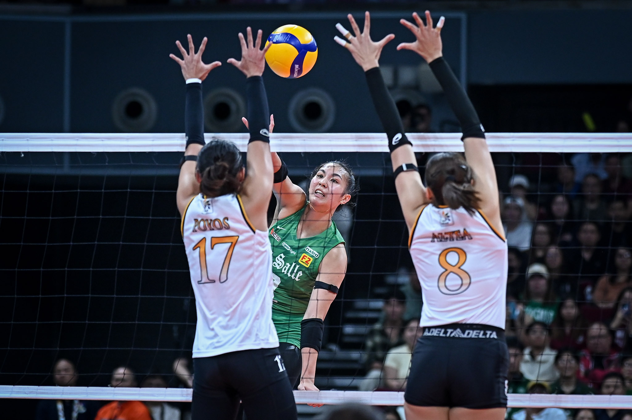 De La Salle University fended off a late surge by University of Santo Tomas to complete a 25-14, 25-15, 26-24 sweep in the UAAP Season 88 Collegiate Women’s Volleyball Tournament, Sunday at the SM Mall of Asia Arena, in front of 15,222 fans.