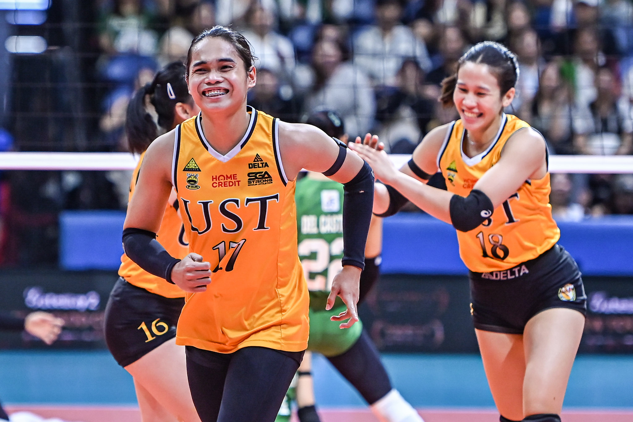 Nigerian middle blocker Blessing Unekwe had her best outing of Season 88 with eight points on seven attacks and was instrumental in UST’s second-set win, while Season 86 Best Setter Cassie Carballo dished out 19 excellent sets along with seven points on four attacks and three aces.