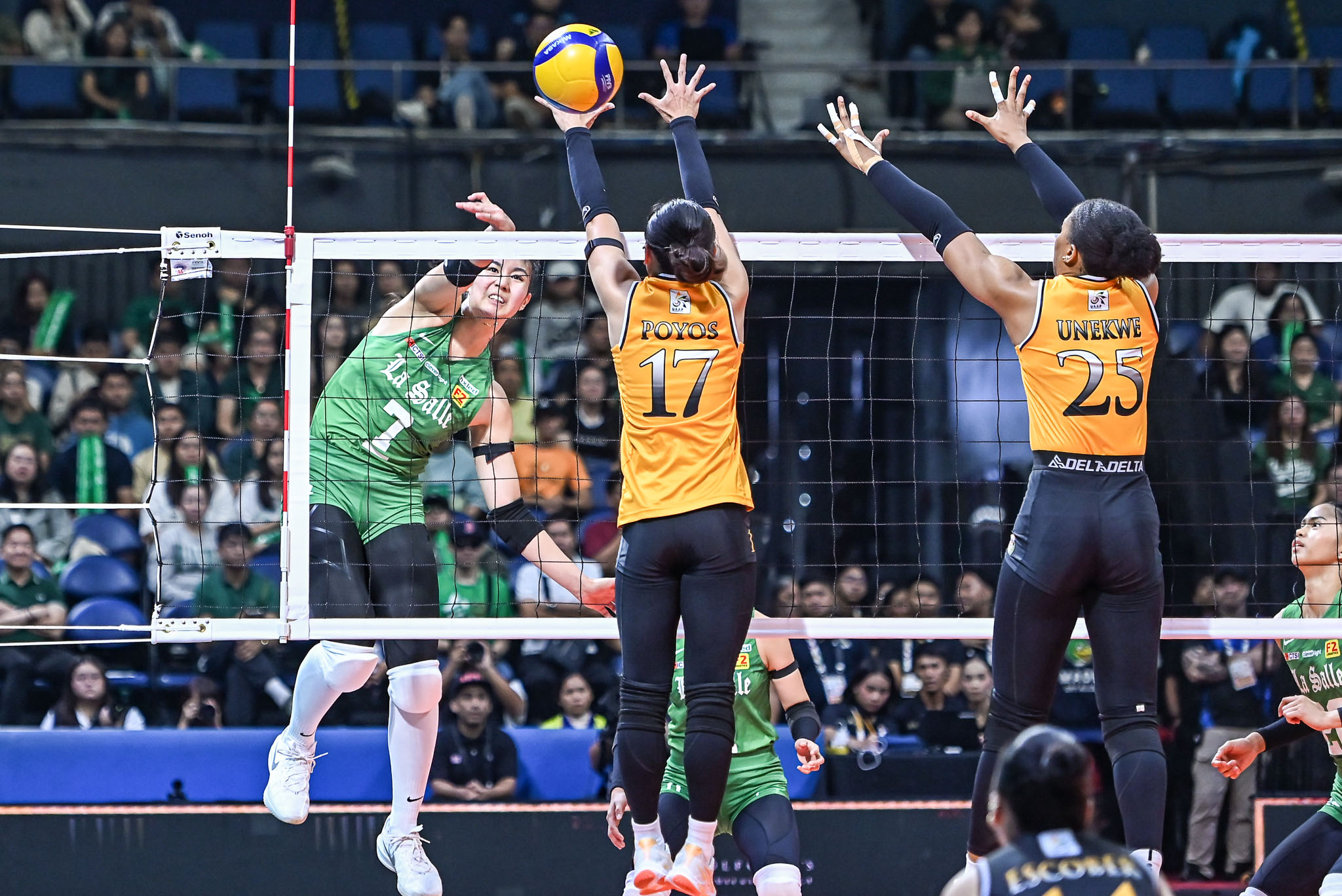 UST sliced the lead to six at 16-10, but La Salle’s dominant start proved insurmountable. Three consecutive Golden Tigresses attack errors, a Canino crosscourt hit, and an Avril Bron double contact violation sealed the contest in one hour and 52 minutes.