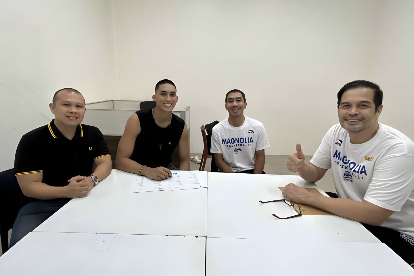 Also present at the signing were Hotshots head coach LA Tenorio and team manager Alvin Patrimonio.