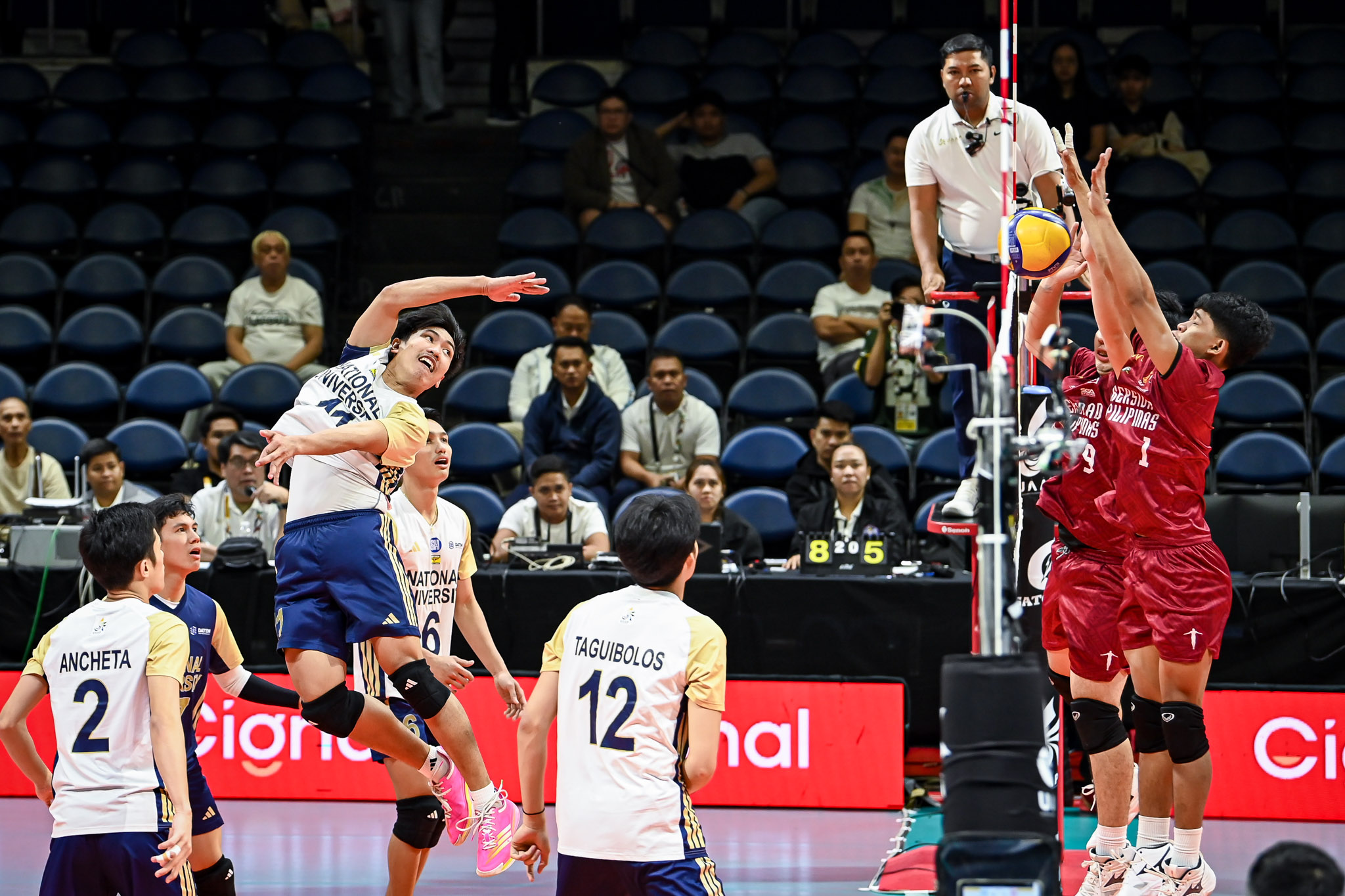 UP sliced the deficit to as low as 22-18, but NU quickly regained control, closing out the straight-sets triumph with a Taguibolos attack and block, alongside the game-winning block by rookie hitter Yuan Mendoza on Nigerian wing spiker Olayemi Raheem.