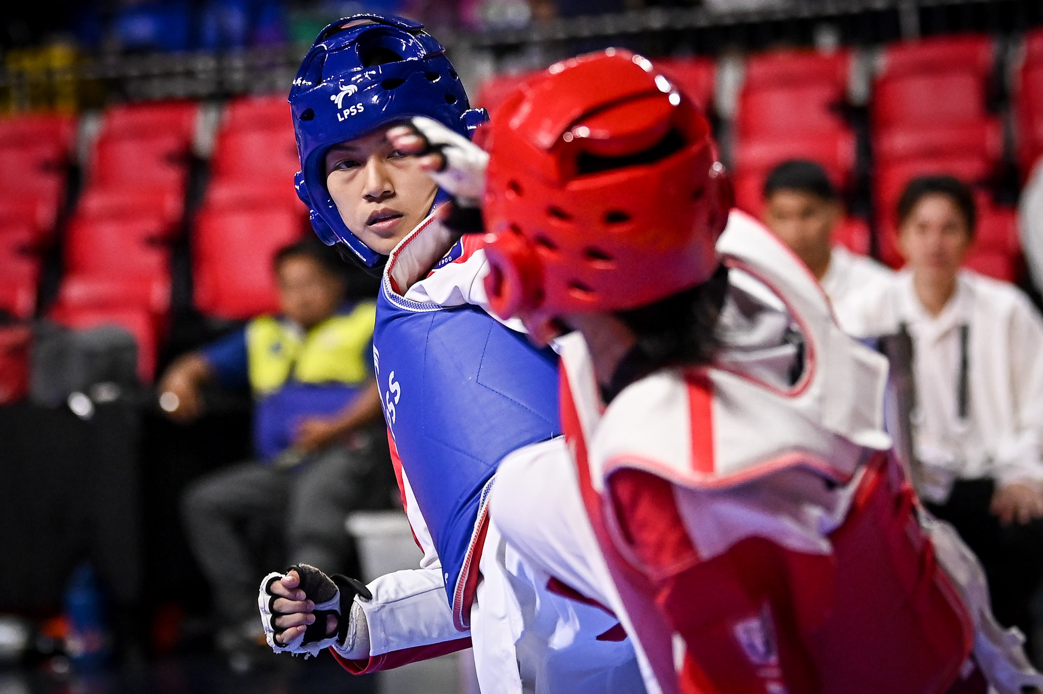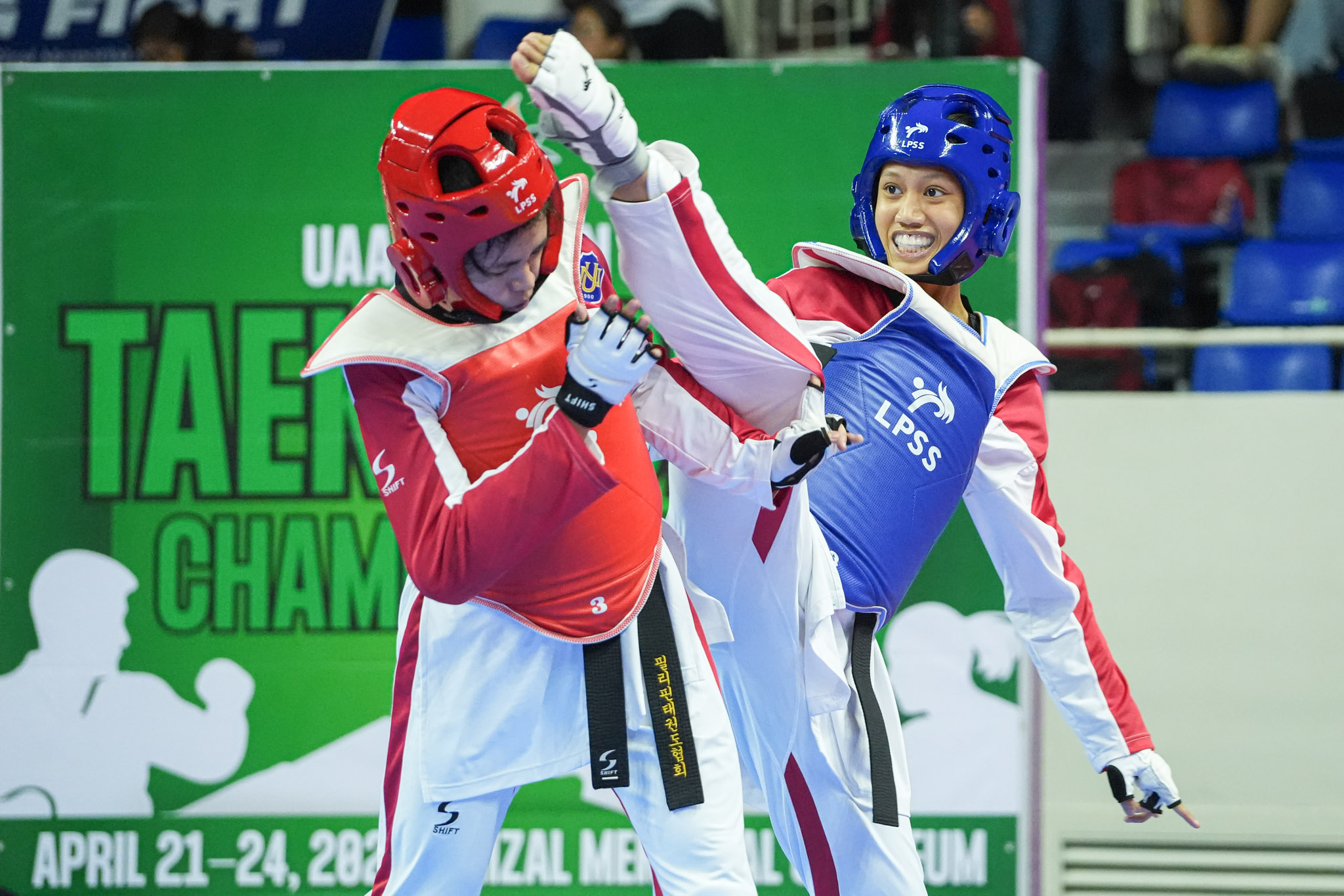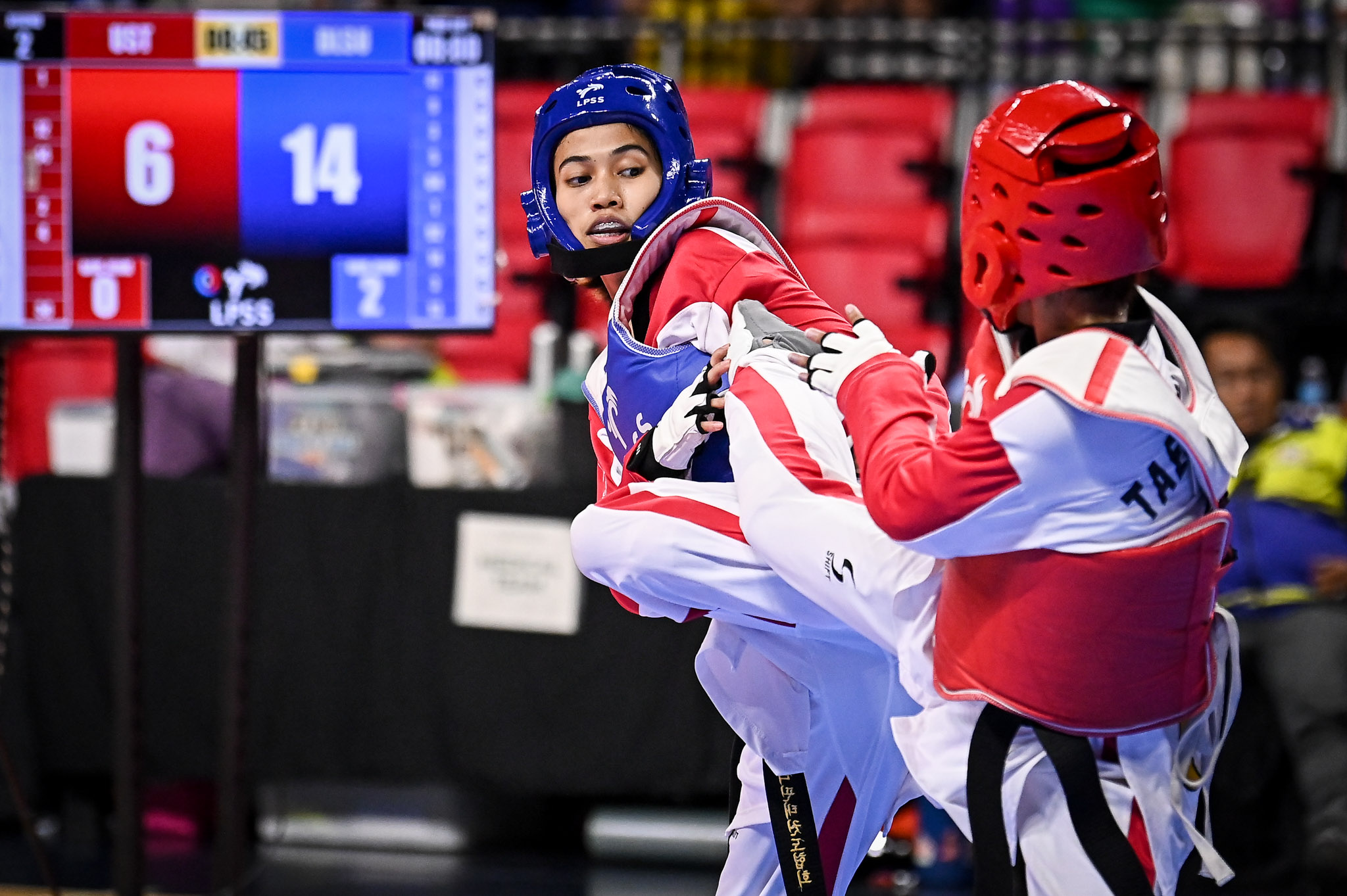 Later in the afternoon, Rajany Santos added another gold, dominating University of the Philippines’ Mikaela Sese, 15–7, 1–1, in the flyweight (under-46 kg).