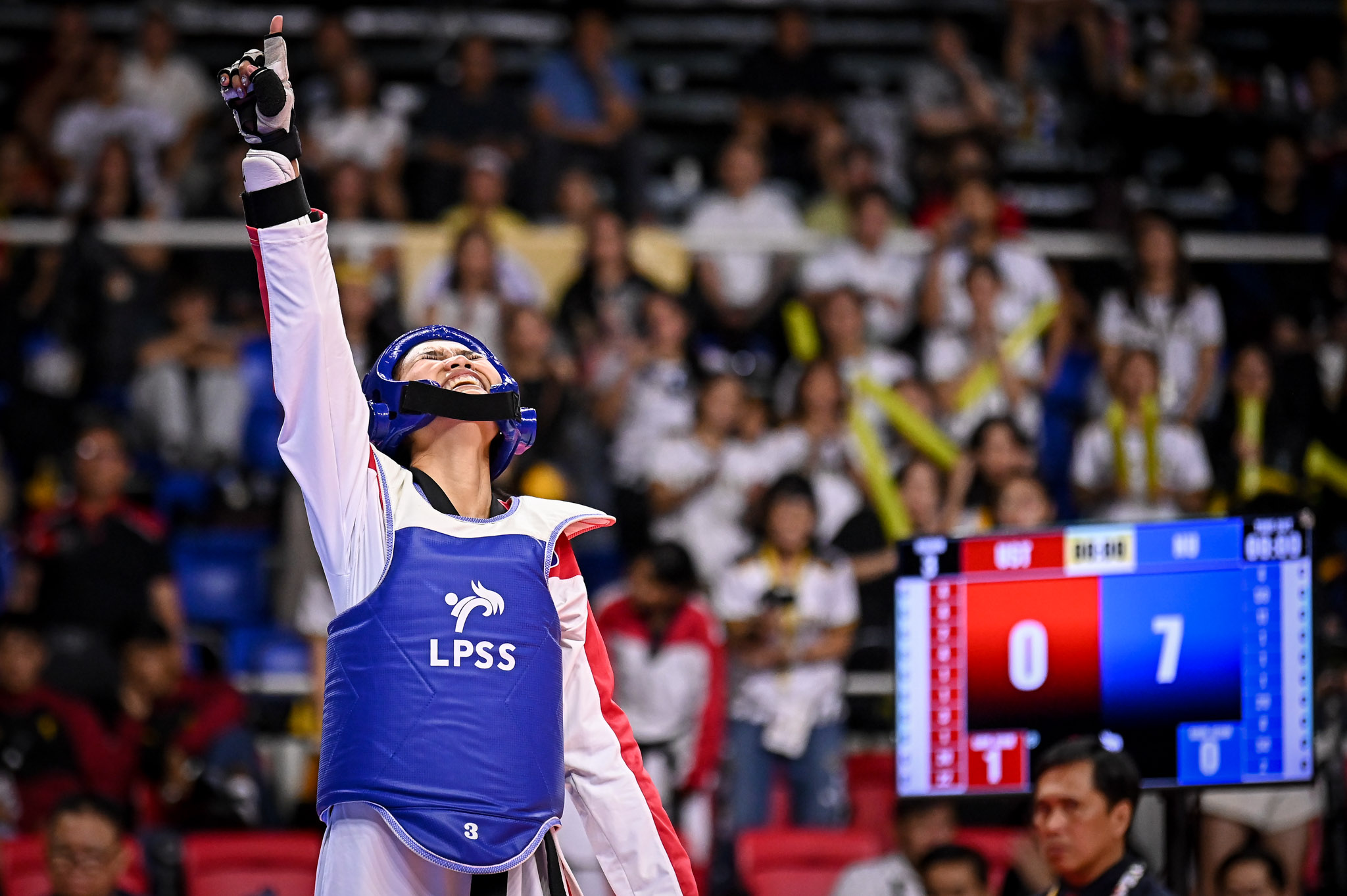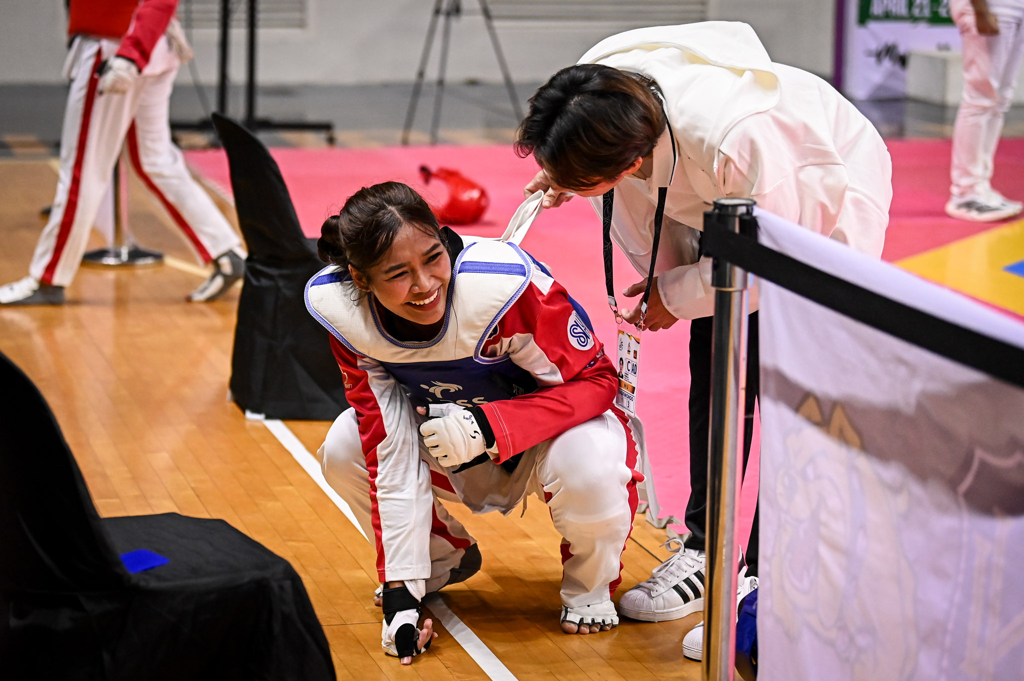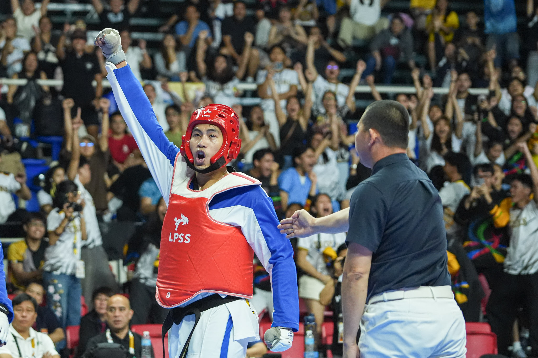 Later in the afternoon, Rajany Santos added another gold, dominating University of the Philippines’ Mikaela Sese, 15–7, 1–1, in the flyweight (under-46 kg).