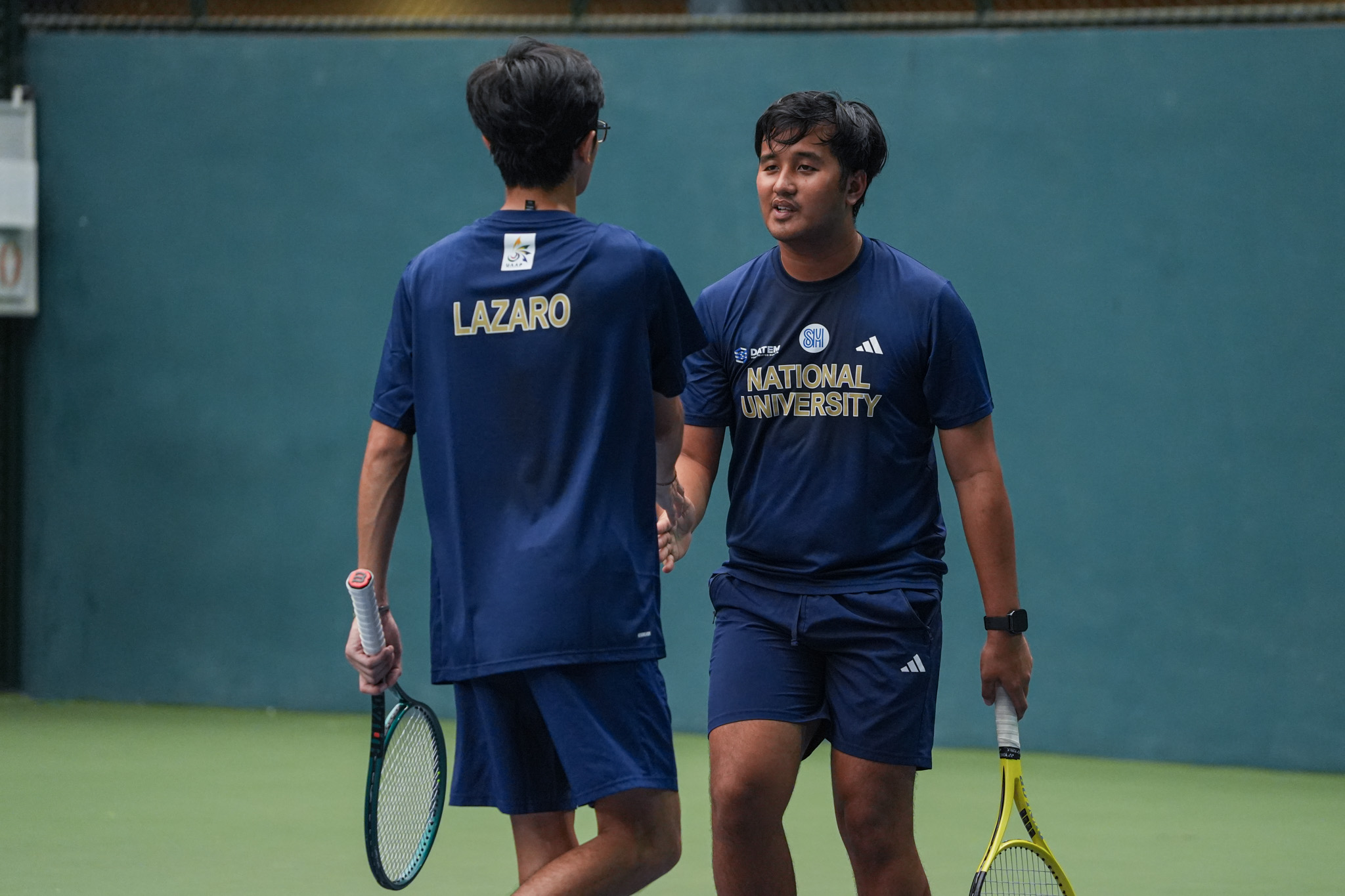 DLSU earned its two points from a dominant 6-2, 6-1 first doubles win by EJ Geluz and Daniel Estanislao over Al Zayeed Baid and Mcleen Gomera, and a hard-fought 7-5, 7-6(6) win by Yassan Al Anazi over Christopher Sonsona in third singles.
