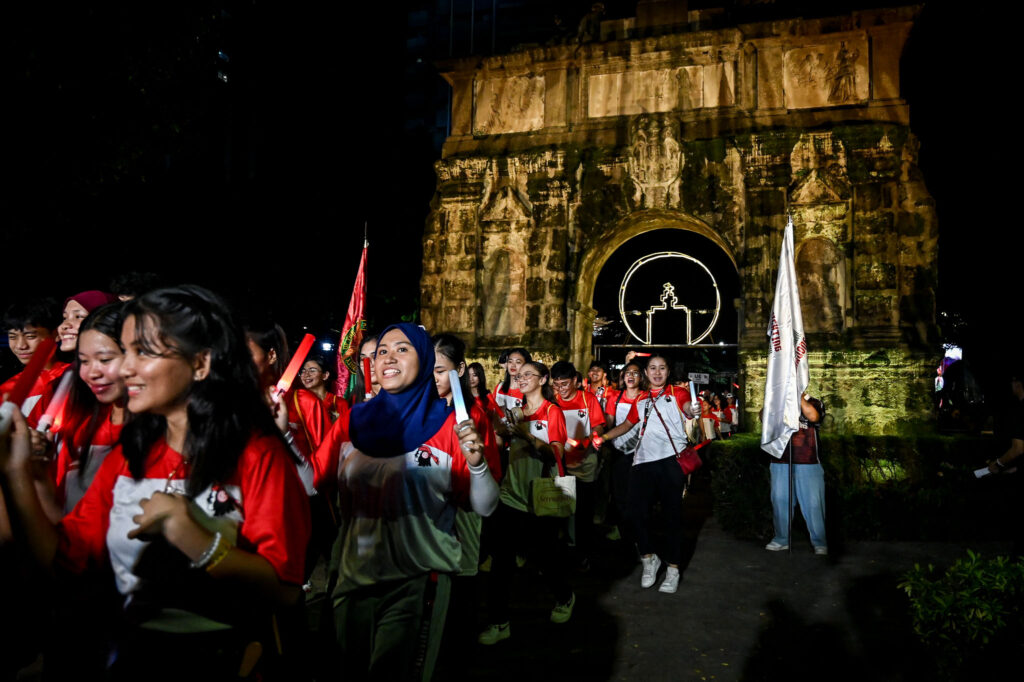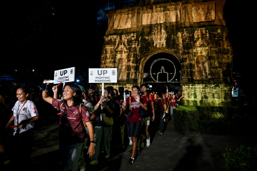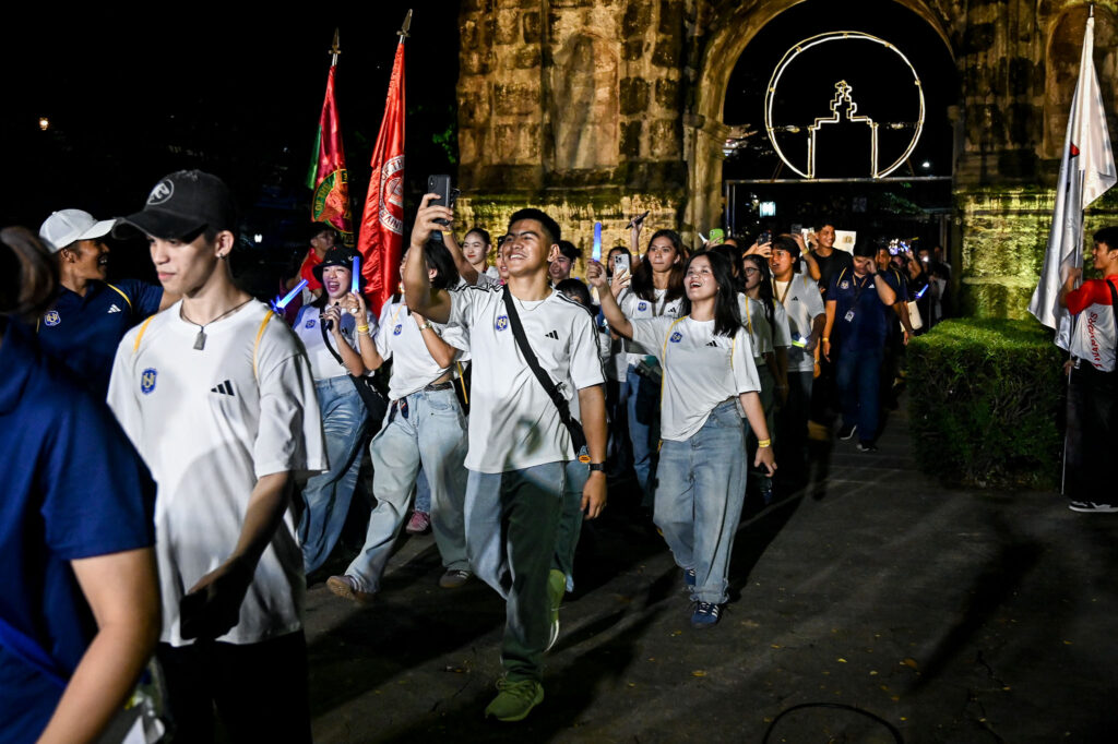 Delegations from all member schools, except the host UST, marched through the Arch of the Centuries in an Olympic-style introduction — banners raised high and school cheers echoing across the four corners of España.