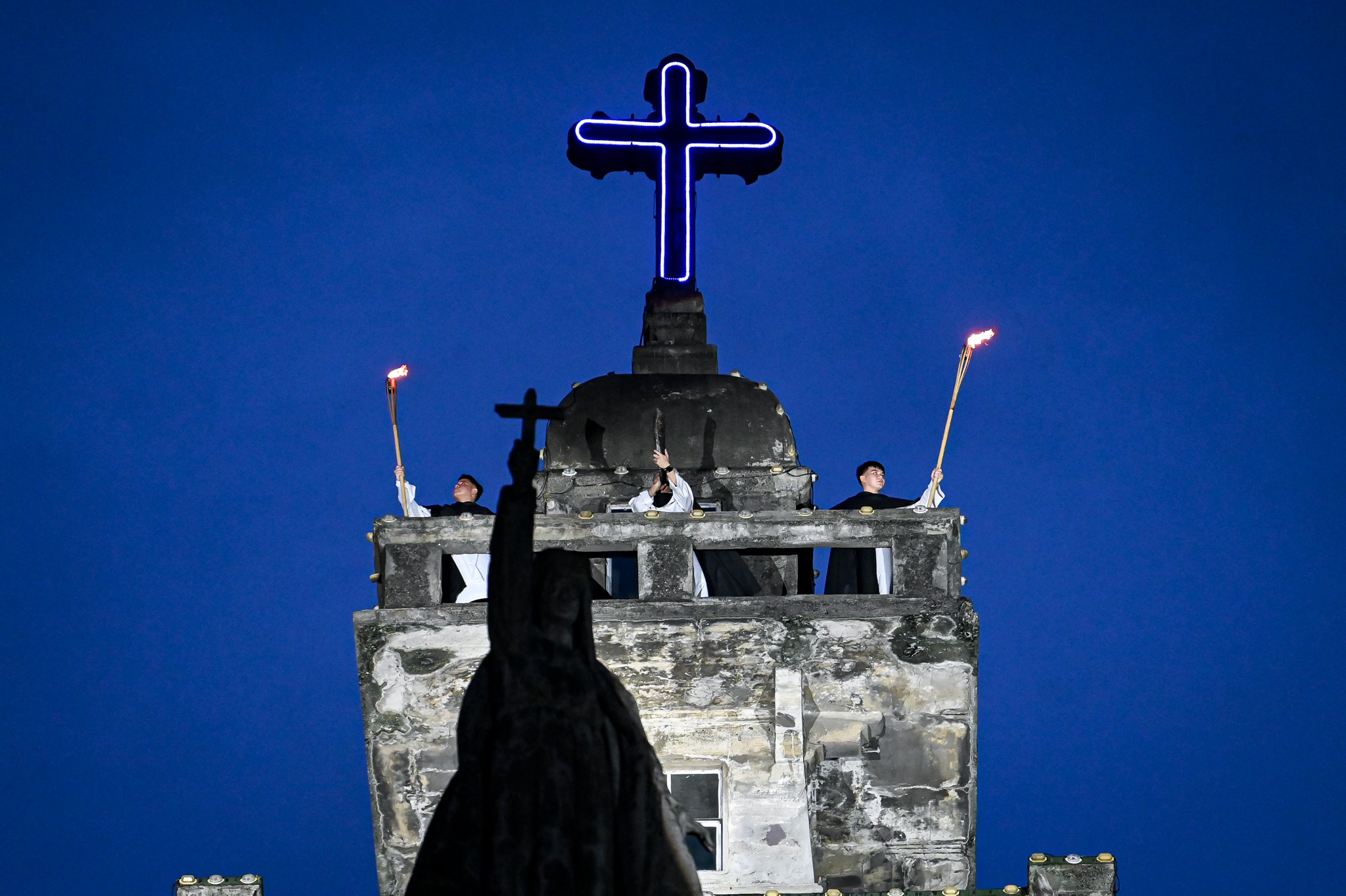 Rondina began the relay at the Arch of the Centuries before handing the torch to Cruz at the Miguel Benavides Building.