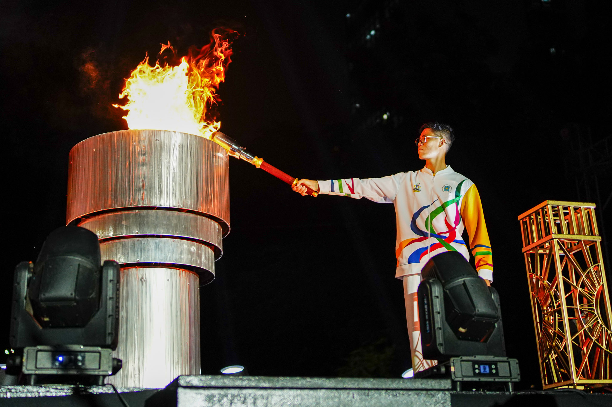 Carrying the flame of sporting greatness from one generation to another, Sy entrusted the torch to Obiena, who delivered a climactic finish by lighting the cauldron at the UST Grandstand.