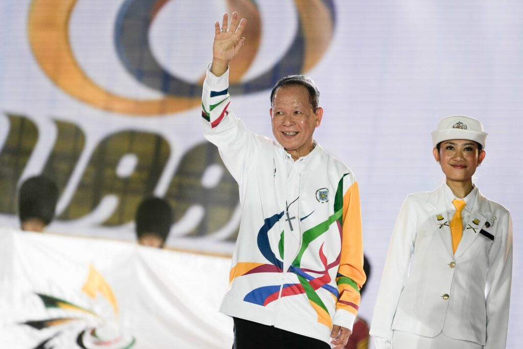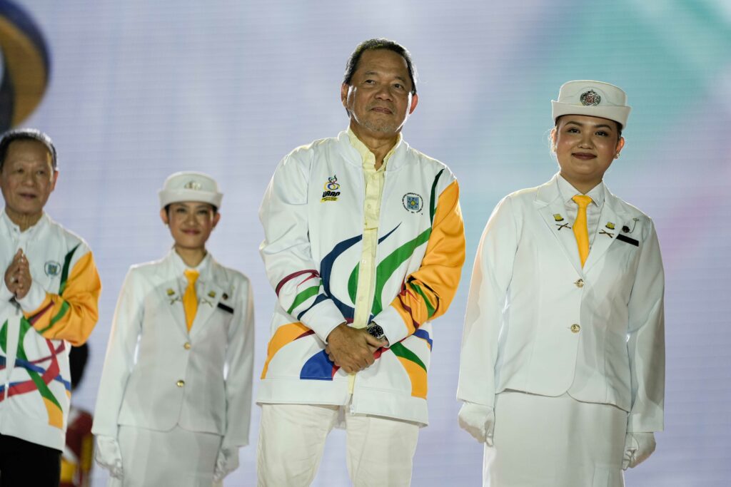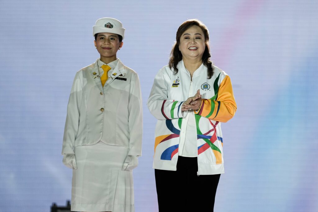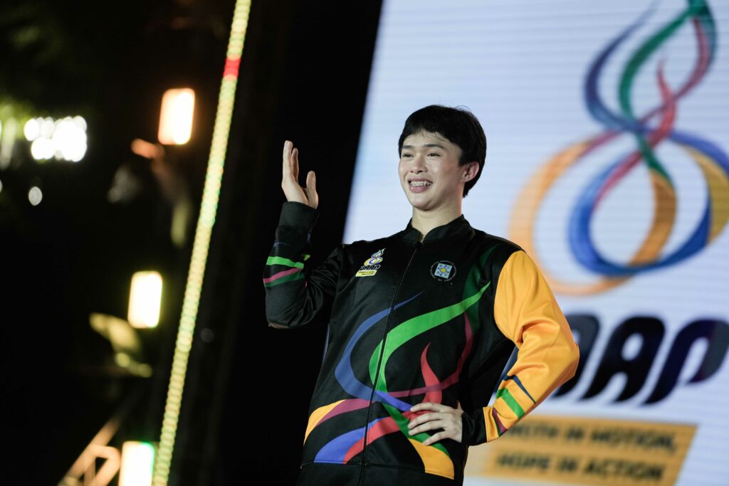 The evening reached its climax with the torch relay and cauldron lighting, featuring UAAP men’s basketball champion Jervy Cruz, Filipino martial artist Sydney Sy, Philippine volleyball icon Sisi Rondina, and two-time Olympic pole vaulter EJ Obiena.
