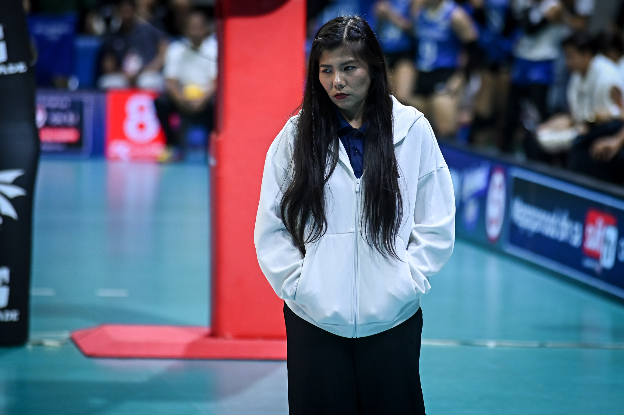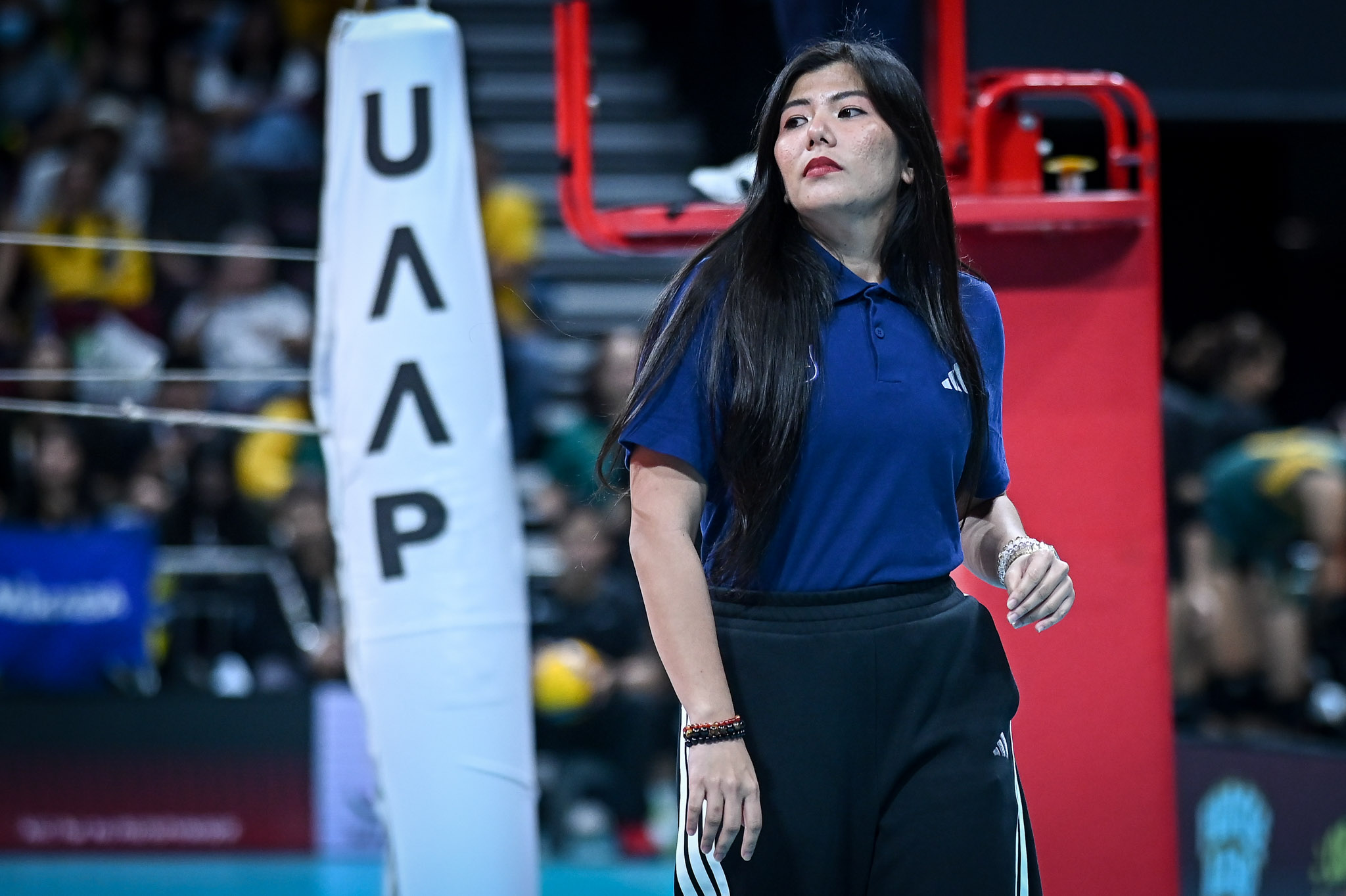The only other female head coach in the UAAP collegiate volleyball divisions is Tina Salak of Far Eastern University.