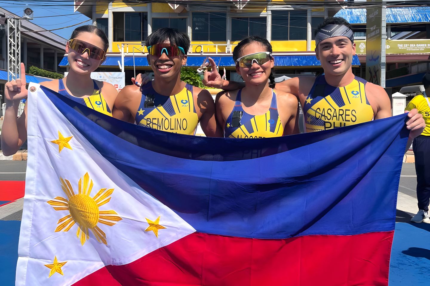 The Philippines kicked off Day 1 of the 33rd Southeast Asian Games triathlon competitions in dominant fashion, capturing gold in the mixed team relay and sweeping all three titles at stake on Wednesday at Laem Mae Phim Beach in Rayong, Thailand.