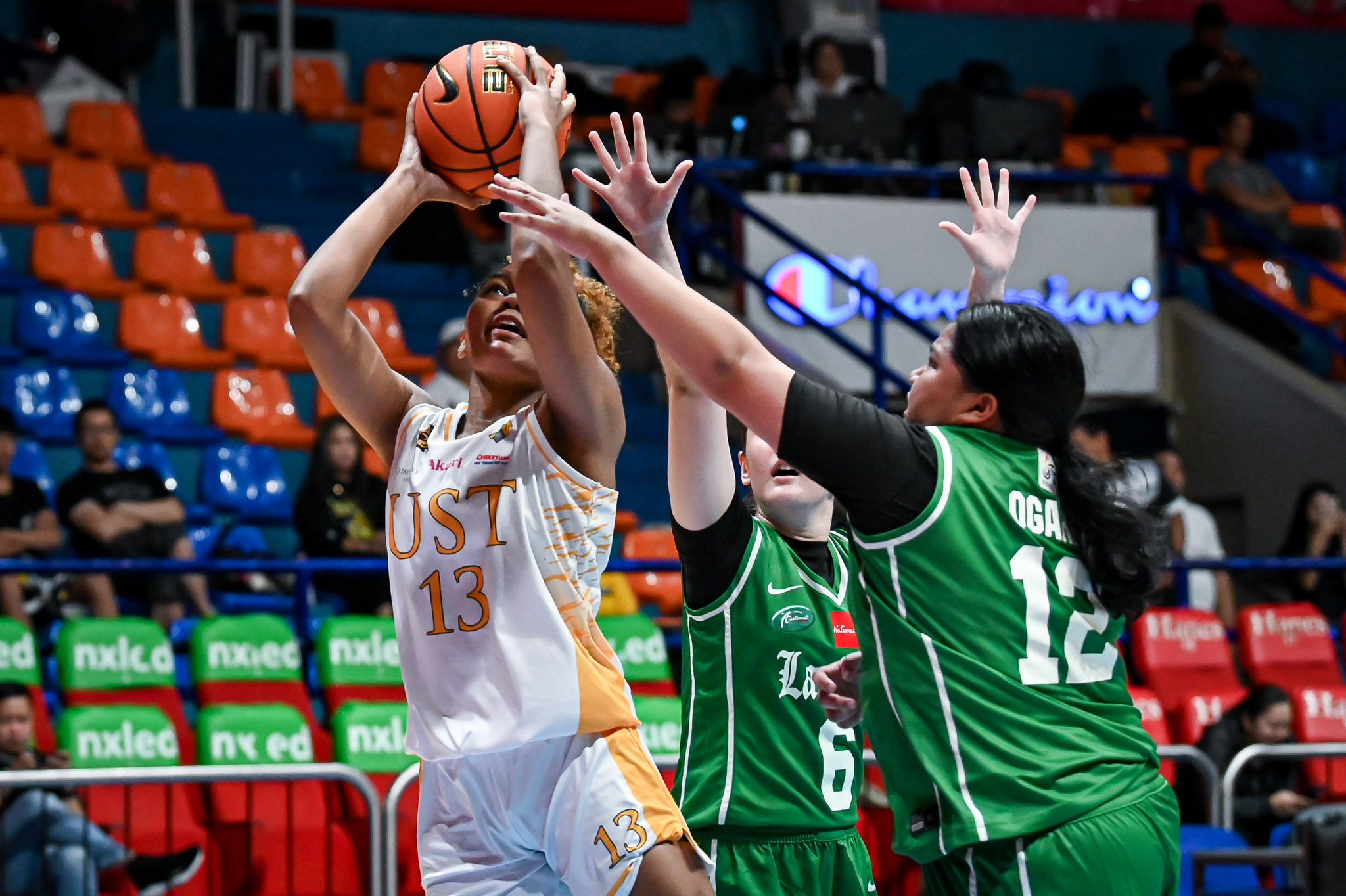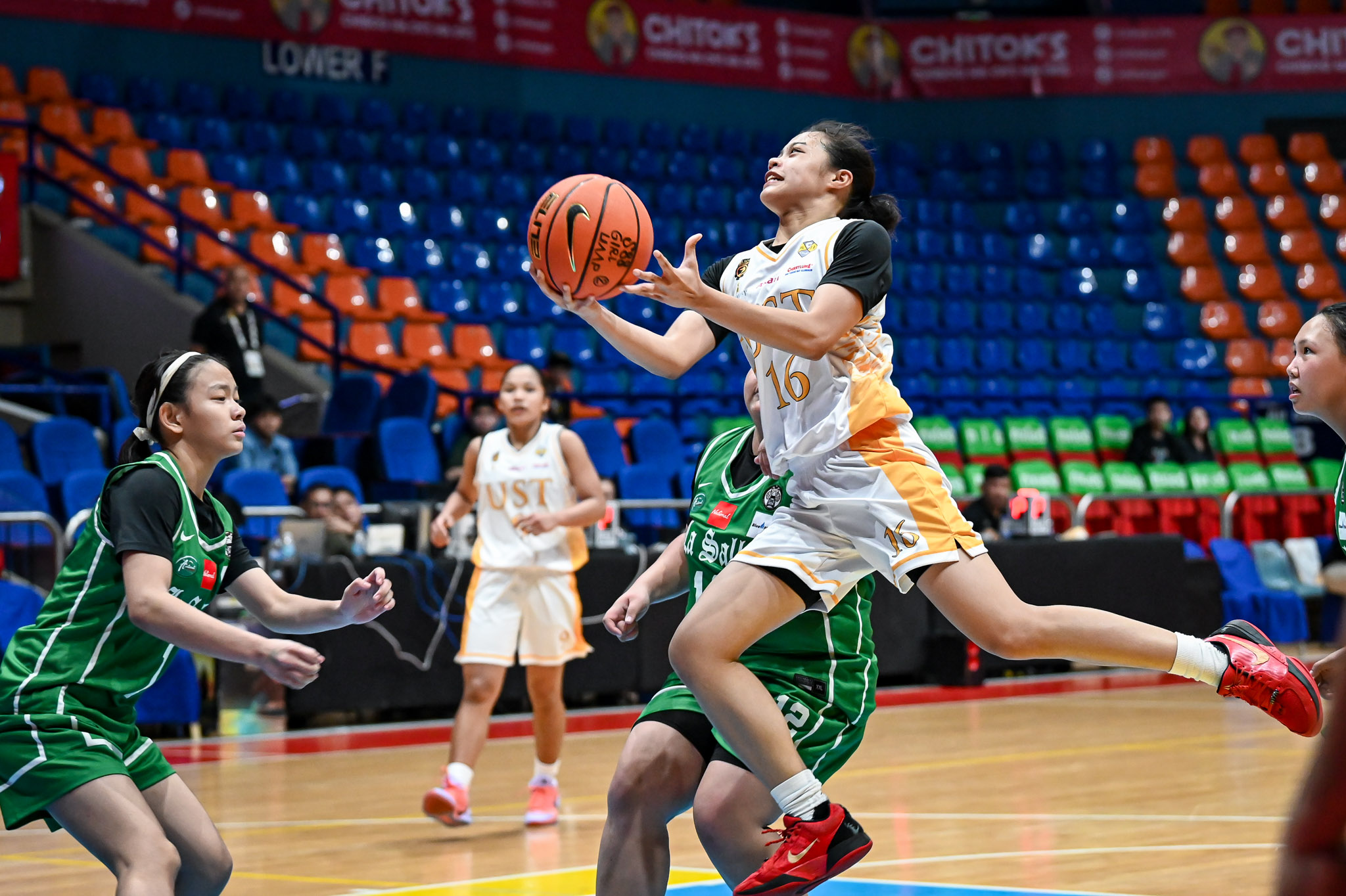 After a sluggish opening quarter that saw the Junior Lady Archers lead by as many as five points, UST seized control with a commanding 28-15 second period. Back-to-back layups from Pinuela and an and-one basket by Sandra Abrantes highlighted the surge, as the Tigresses went into halftime with a 45-32 advantage.