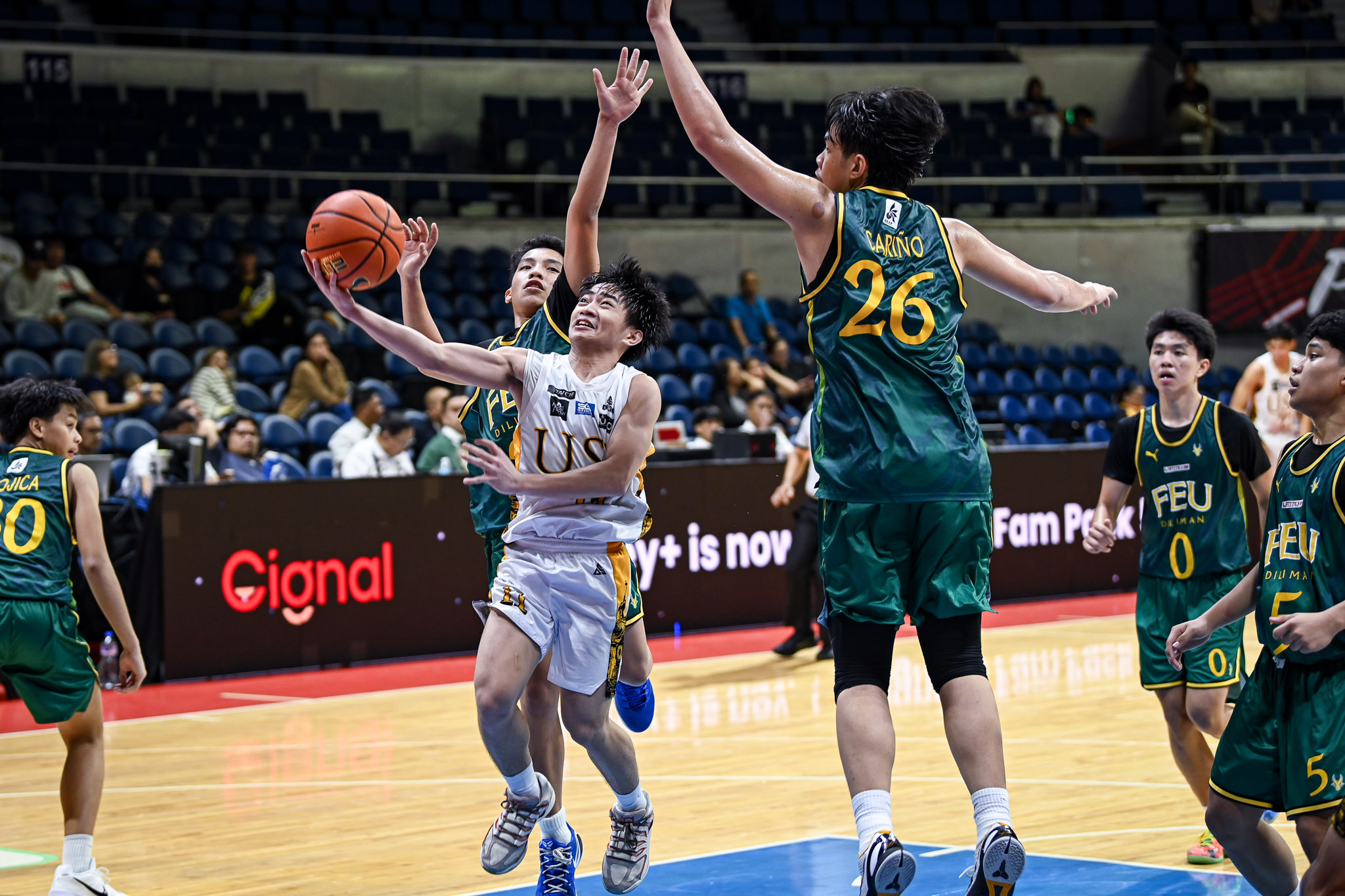 After taking a 48-35 lead at halftime, UST broke the game open with a dominant 27-12 third-quarter stretch — fueled by Tabbuga’s 15-point eruption built on five three-pointers — to establish a commanding 75-47 advantage heading into the final frame.