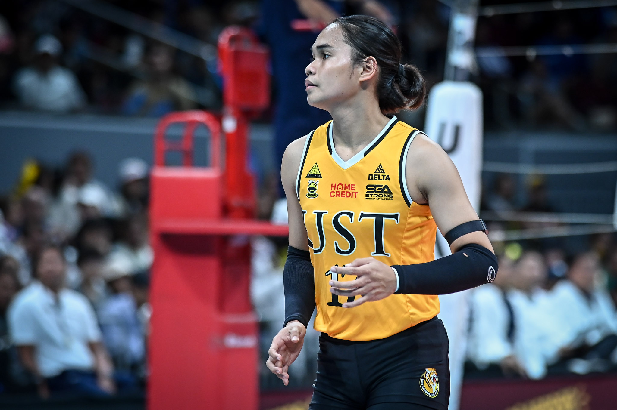Although Angge Poyos kept UST alive with a point to extend the set, Alinsug responded with a hit that grazed the blockers’ fingers. Poyos’ ensuing attack sailed out, sealing the victory for the Lady Bulldogs.