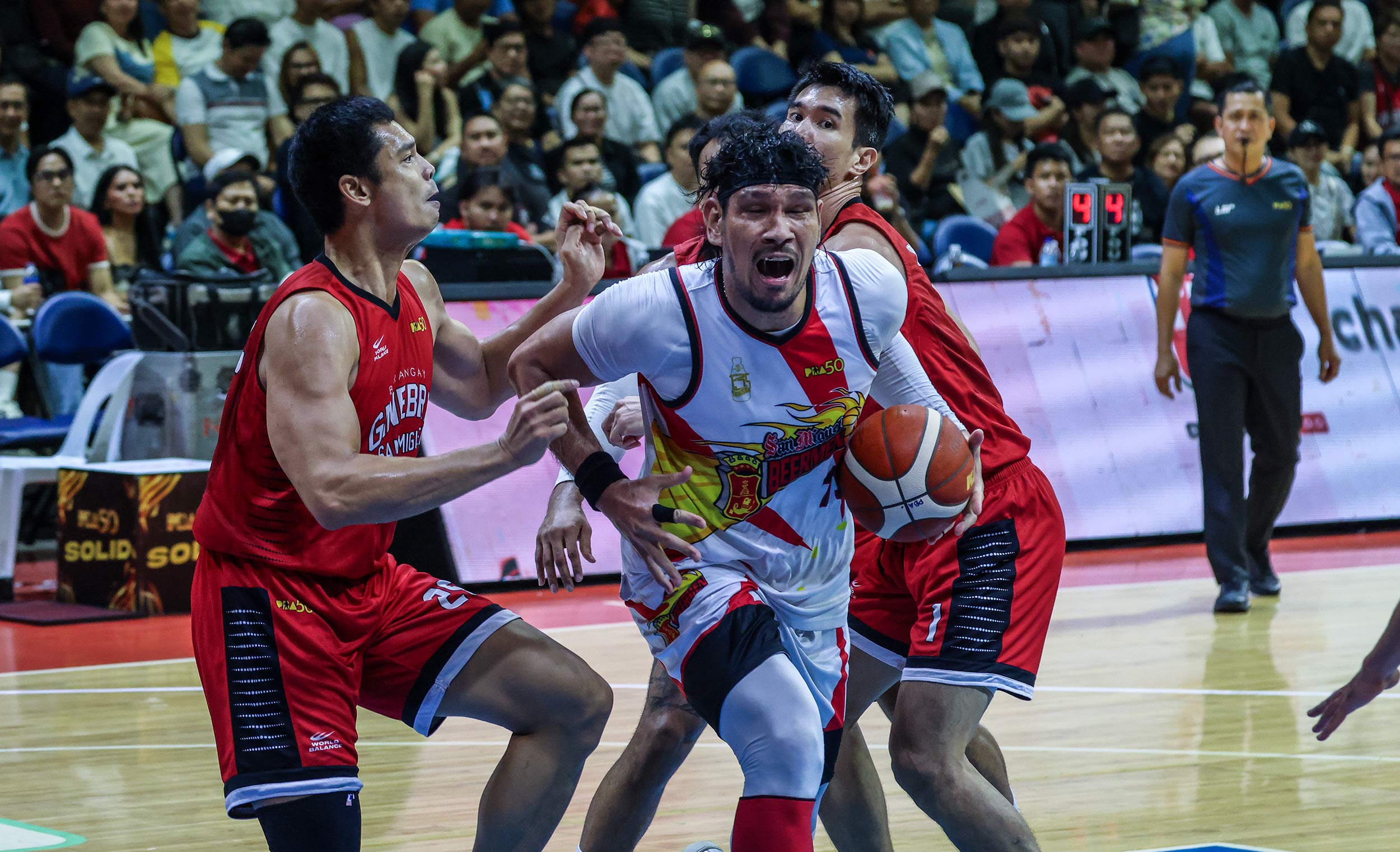 The Beermen saw their 111-99 lead become just two no thanks to a stepback triple by RJ Abarrientos with 13.4 seconds to go, and it didn’t help that CJ Perez muffed both of his free throws that could’ve given them more room to breathe.