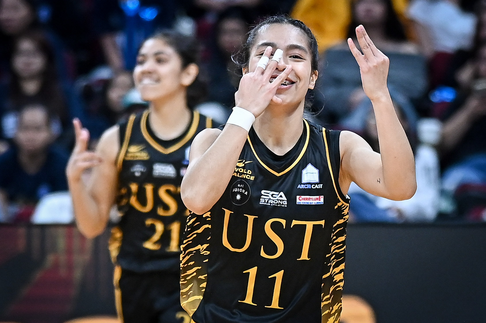 But this time, history would bend in UST’s favor. With the program aiming to cap a historic elimination round sweep, Santos and Sierba rose to the occasion once more, combining for 32 points to lead the Growling Tigresses to a commanding 95-70 victory and force a winner-take-all Game 3.