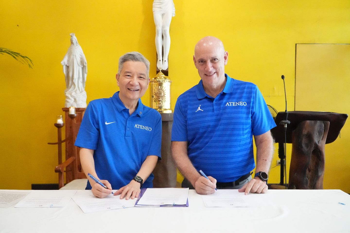 The signing took place in the presence of Ateneo president Fr. Bobby Yap, SJ, following the team’s send-off mass at the Jesuit Residence Chapel.