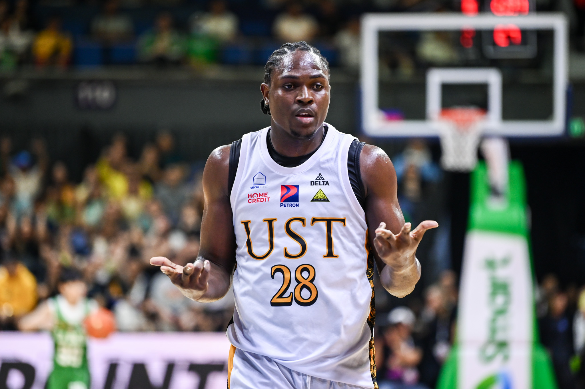 “It’s a great feeling, just taking advantage of our crowd. I just do what I have to do. I’m representing UST, and I have to take it upon myself. They’re taking care of me, so this is my way of giving back,” Akowe said after their opening-game win at the UST Quadricentennial Pavilion.