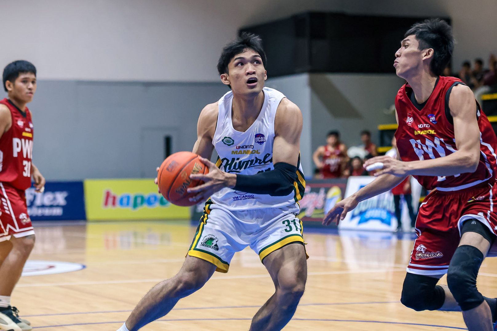 High-leaping forward Bryan Manuel scored 18 points to help reigning champion Olivarez College secure a 65-56 victory over Philippine Women’s University in the PG Flex-UCAL Season 8 Basketball Tournament on Monday, Feb. 9, at the Paco Arena in Manila.