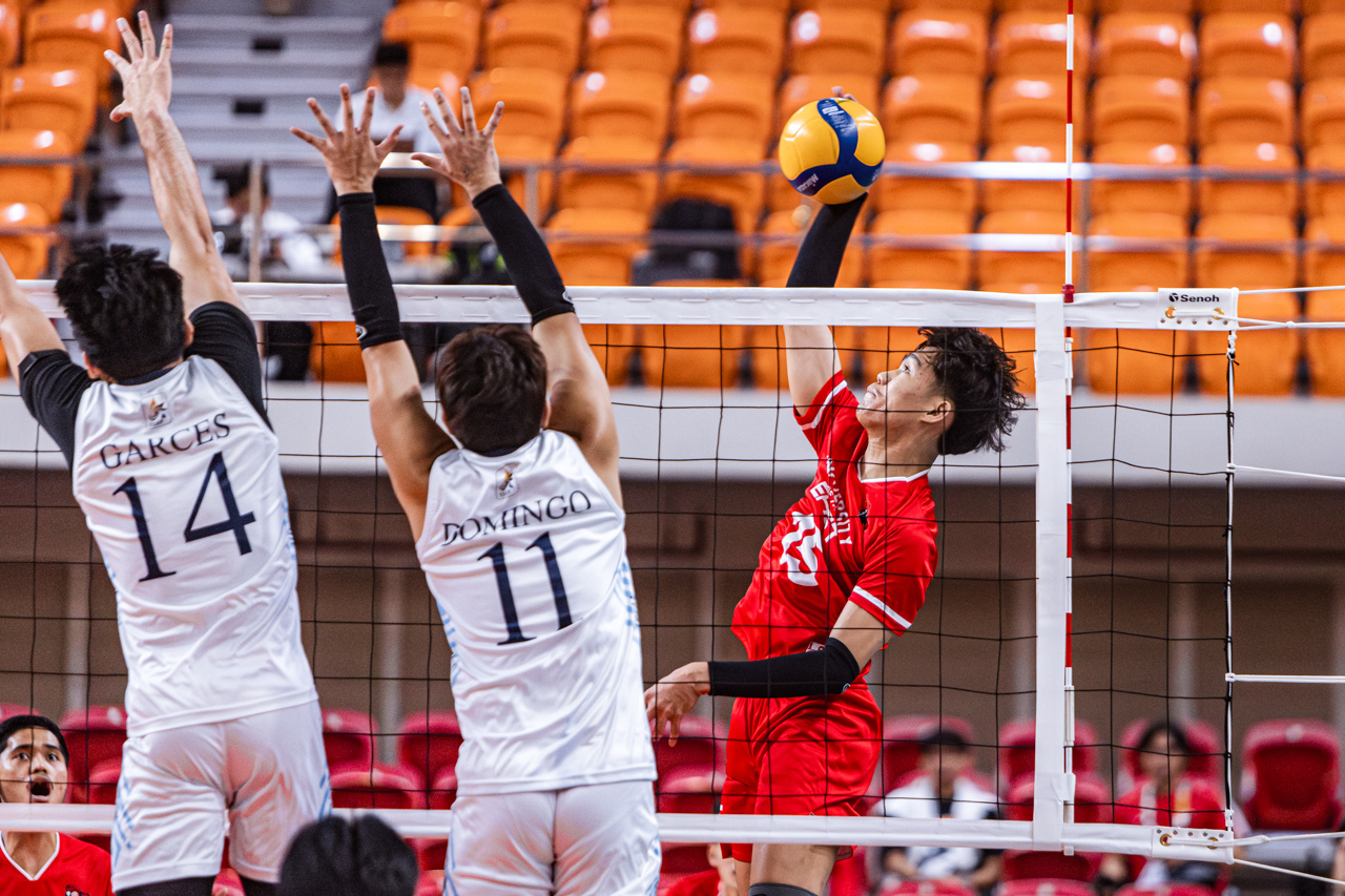 The Soaring Falcons’ wing spikers were effectively contained by UE, as middle blockers Leo Coguimbal and Zyro Ornos led the scoring with 11 and nine points, respectively.