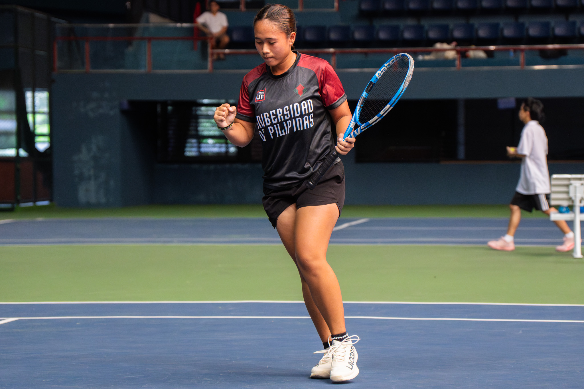 Earlier, Jufe Cocoy secured the first point for the Fighting Maroons with a straight-sets win over Mica Emana, 6-2, 6-2, in first singles.