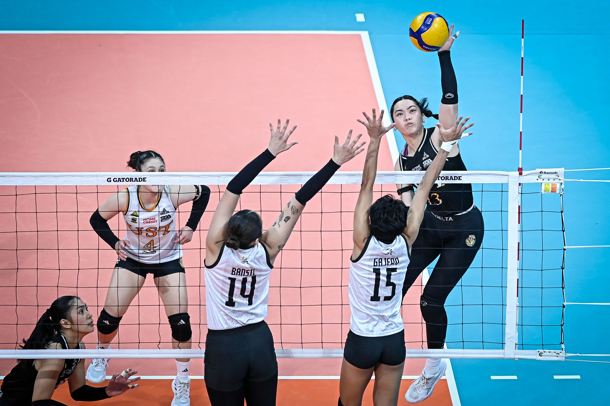 The change proved decisive as the duo delivered the lift the Golden Tigresses needed to turn back the Fighting Maroons, 23-25, 25-21, 25-22, 25-19, securing at least a playoff for a Final Four berth on Sunday at the SM Mall of Asia Arena.