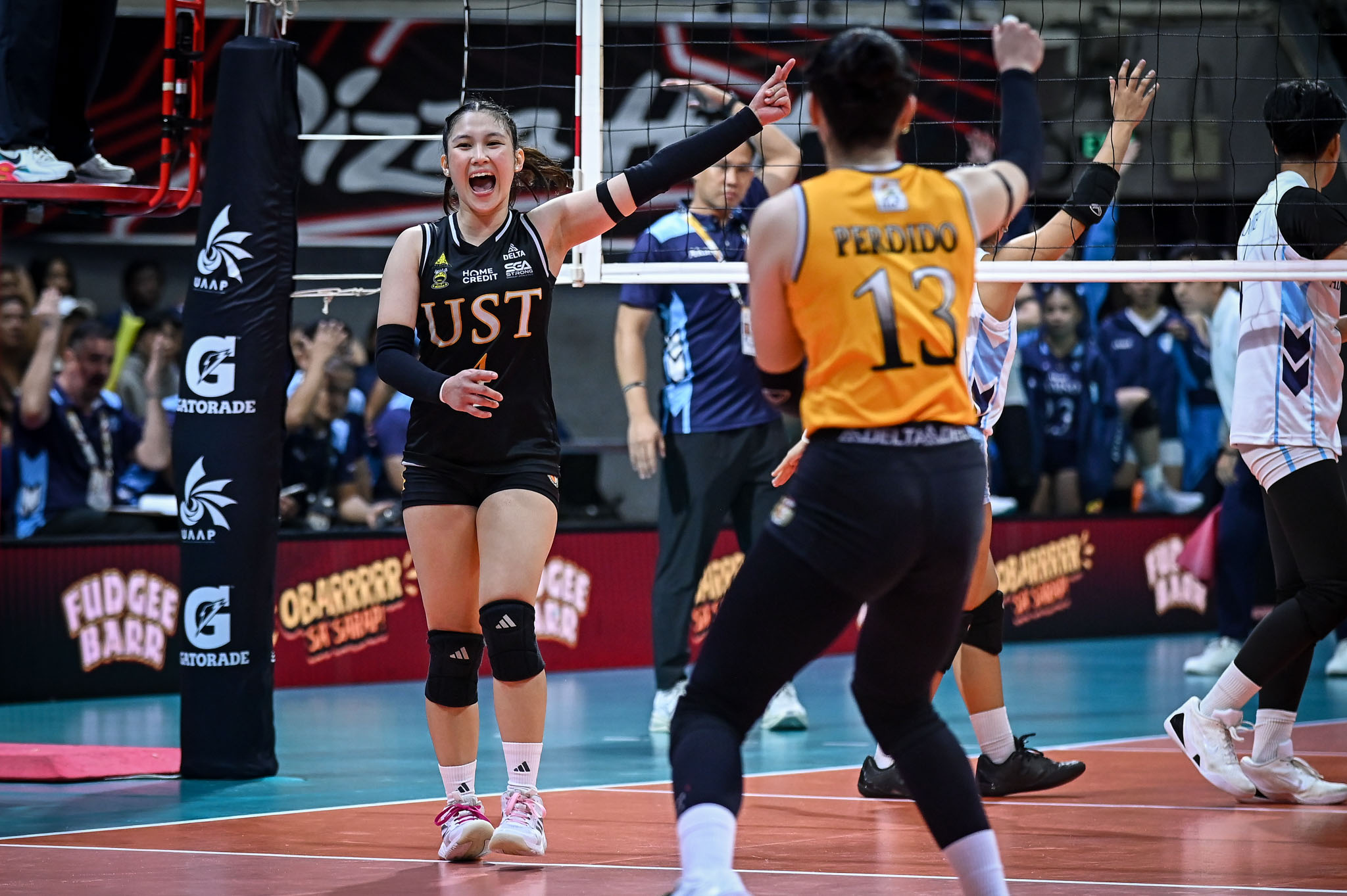 “Although hindi namin inexpect na ganito kabilis ‘yung laro, sobrang happy lang talaga dahil tiniyaga talaga ng lahat, especially coaches and teammates ko. Sobrang saya lang, hindi ko pa rin alam kung totoo ba ito dahil kagabi, nakatulog na ko kakadasal kay Lordpaulit-ulit na sana ibigay ito sa amin,” said captain-libero Detdet Pepito, who anchored UST’s defense with 16 excellent digs on 23 attempts and nine excellent receptions, while also adding four excellent sets.