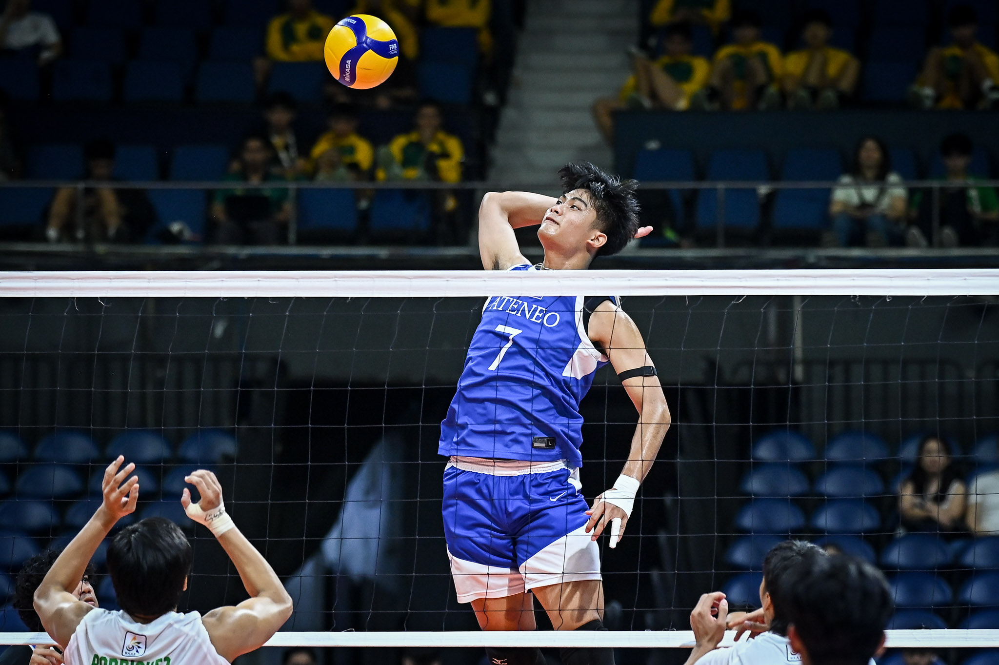 The hero for the Blue Eagles was middle blocker Rodge Alejos, who scored five of his 12 points in the decisive fifth set. Dominant at the net, Alejos finished the match with five attacks and seven blocks.