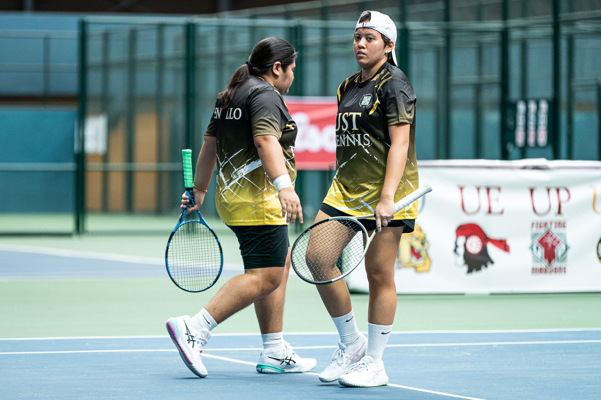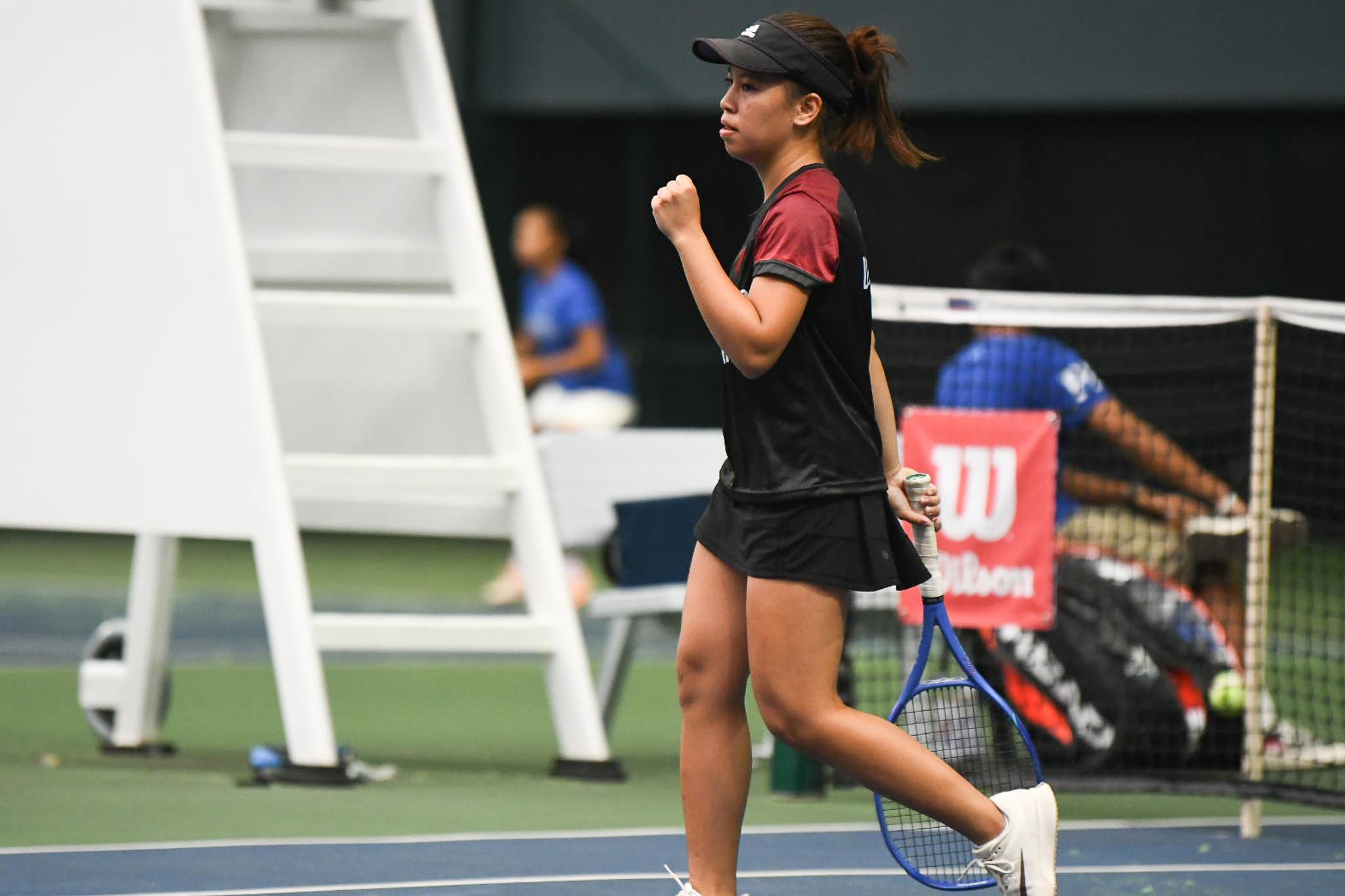 Marielle Jarata and Sydney Enriquez made quick work of Zaina Omar and Eloh Castolo, posting a flawless 6-0, 6-0 victory in second doubles to clinch the tie for the Fighting Maroons.