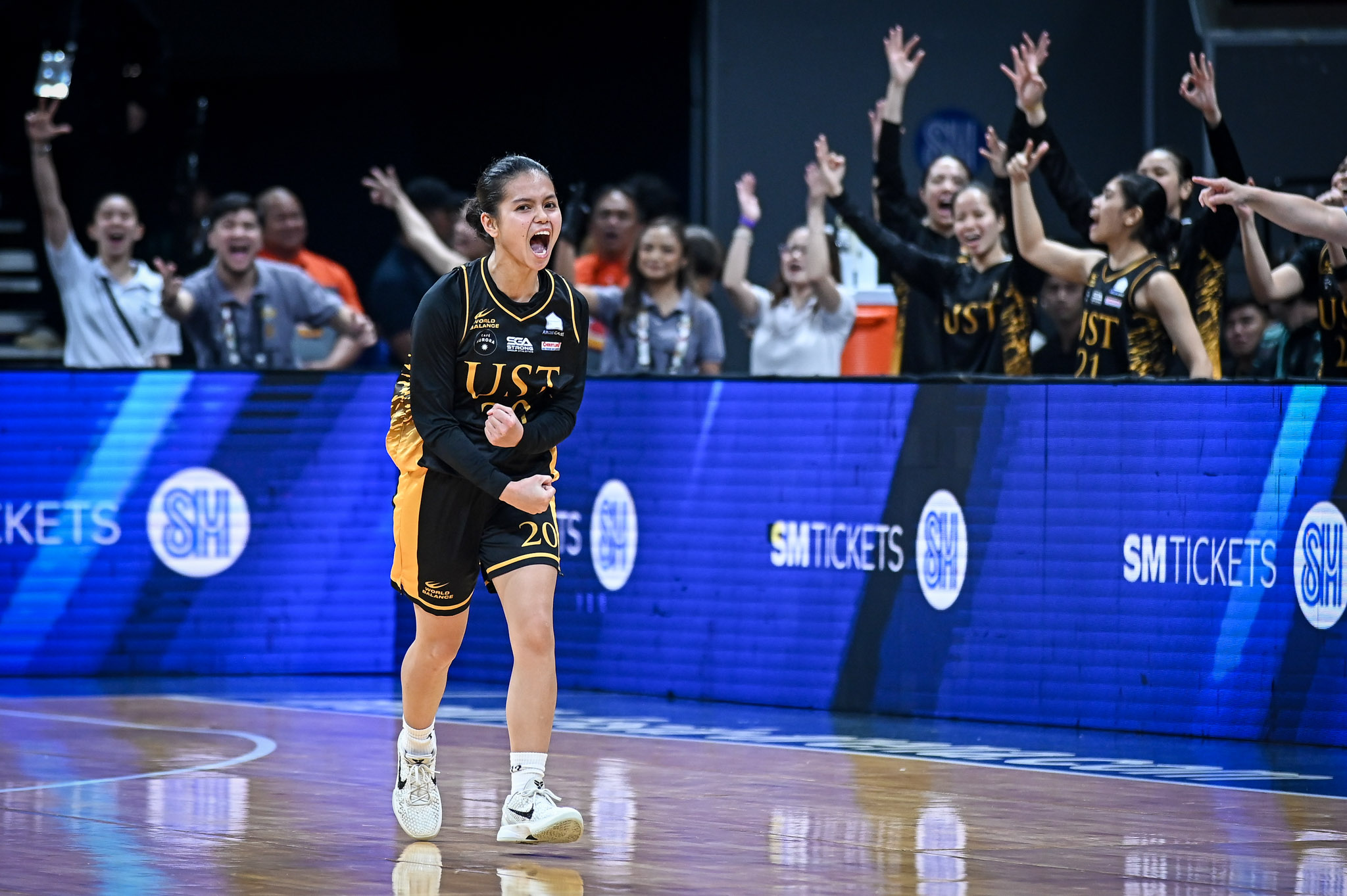 But UST unleashed a decisive blow in the third period as Brigette Santos, Kent Pastrana, Danganan, and Onianwa led a 27-13 quarter to extend their advantage to 75-53 heading into the final frame.