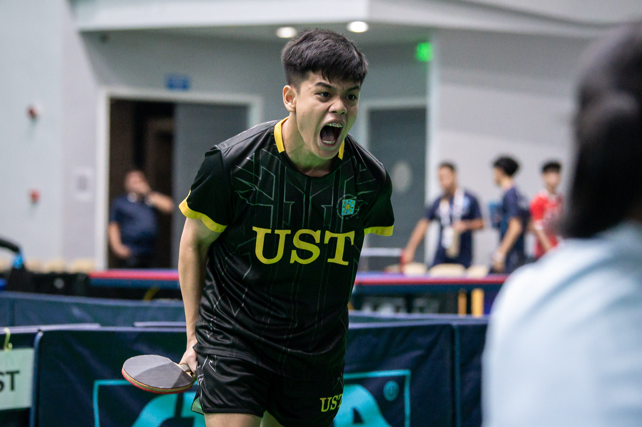 Sophomore Josh Manlapaz ensured that UST closed the thrilling encounter against Ateneo in their favor with a 7-11, 11-9, 11-8, 11-4 victory over Andrew Uy.